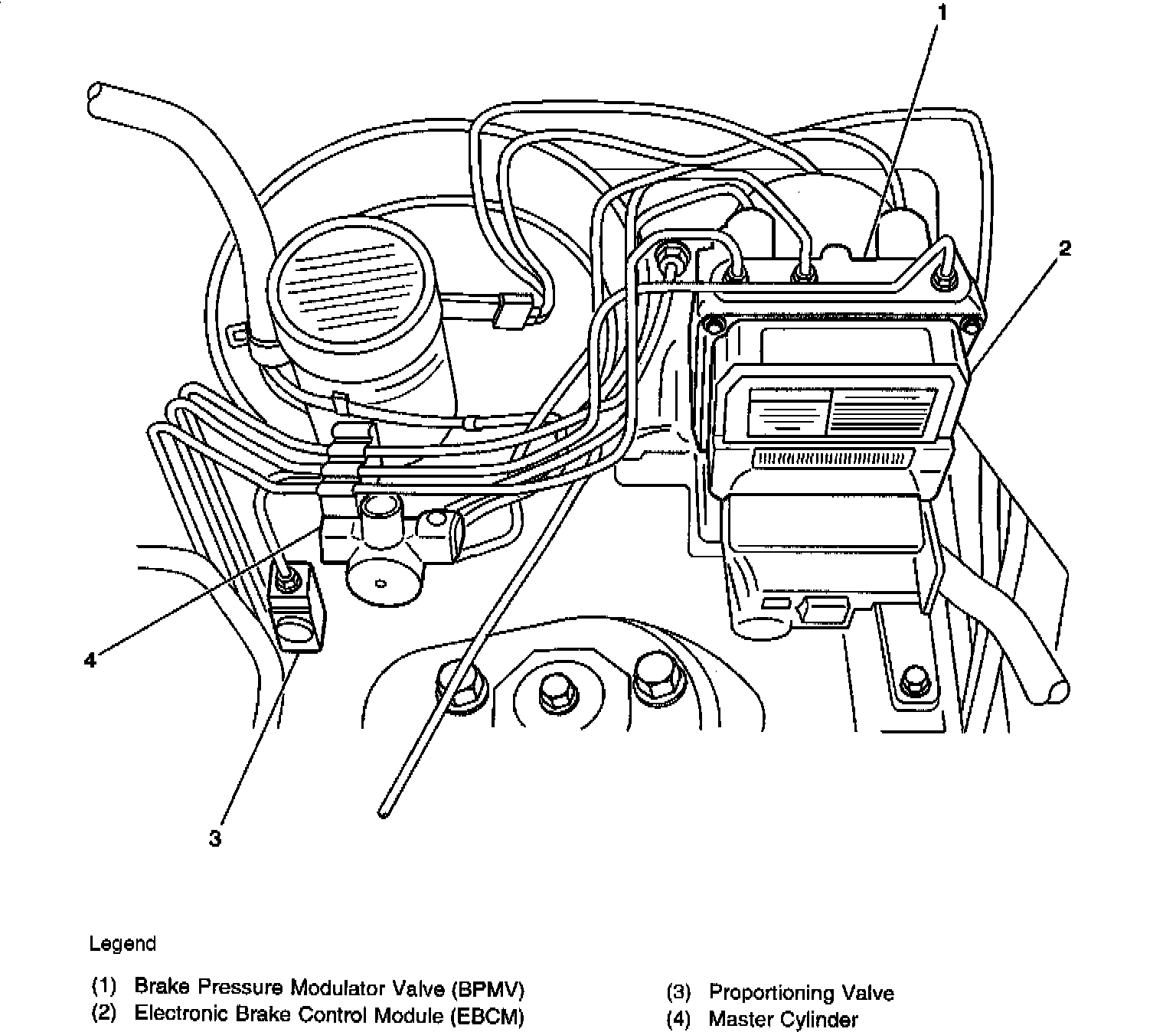 Bolted to the Brake Pressure Modulator Valve