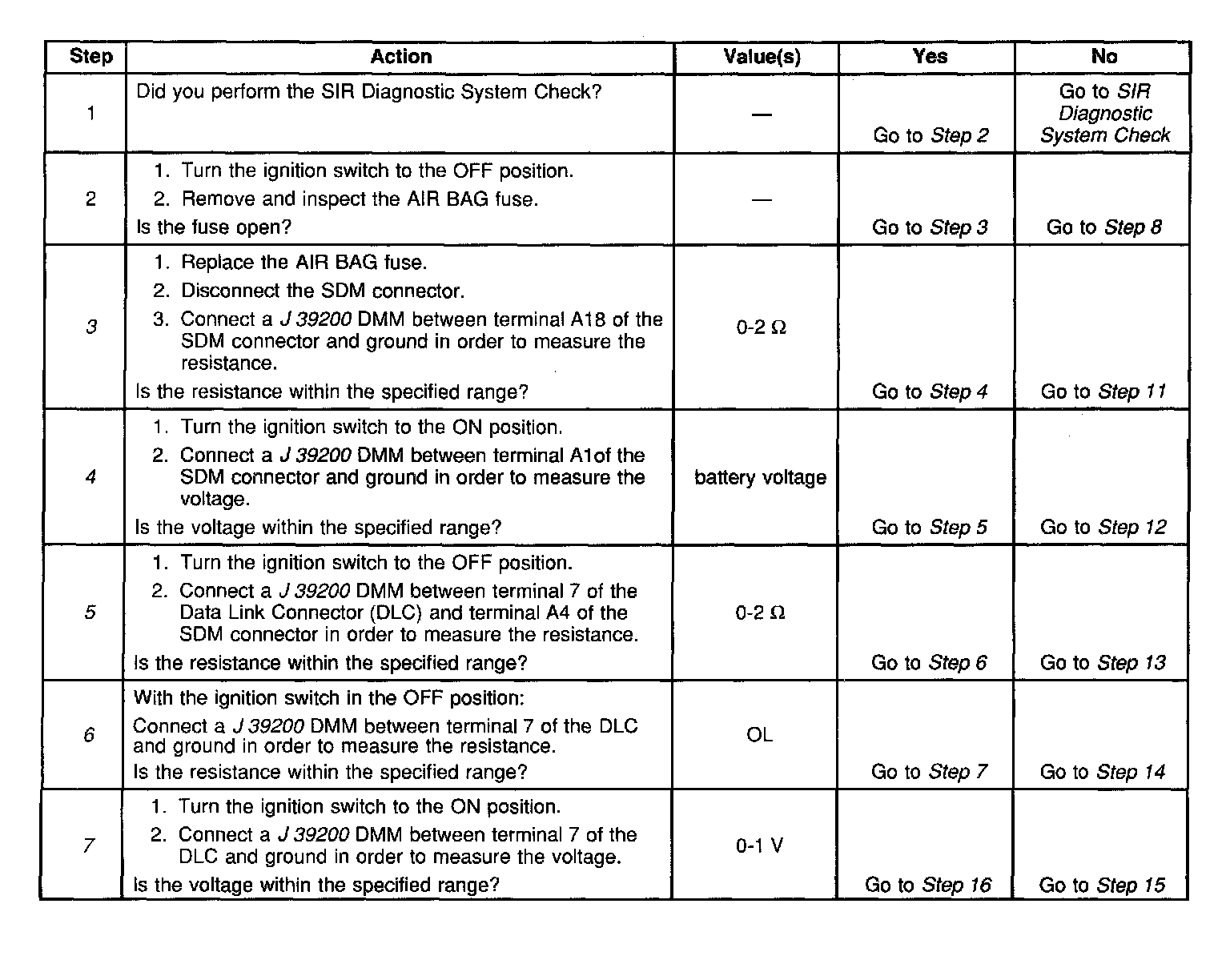 When measurements are requested in this table, use J 39200 Digital Multimeter with the correct terminal adapter from J 35616-A Connector Test Adapter kit. When a check for proper connection is requested, refer to Diagrams. When a wire, connector or terminal repair is requested, use J38125-B Terminal Repair kit.