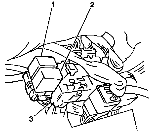 The fuel pump will continue to operate if the PCM receives an ignition reference signal while the engine is cranking or the engine is started and running. The fuel pump operates as long as the fuel pump relay is energized by the PCM. When the fuel pump relay is de-energized, the fuel pump will stop operating. The fuel pump relay (2) is located in the junction box (3), next to the main relay (1), behind the LH side kick panel of the passenger compartment.
