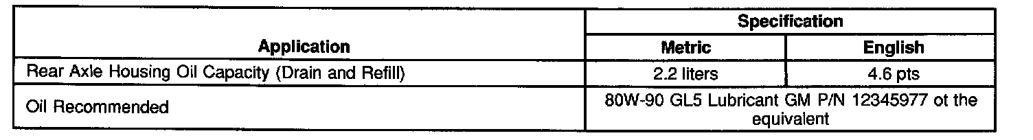 Oil Recommended 80W-90 GL5 Lubricant GM P/N 12345977 or the equivalent