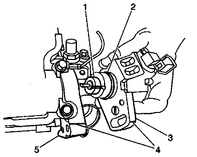4. Install the CMP sensor housing (3) into the cylinder head (5), while observing the offset coupling (1) on the CMP sensor for proper alignment during installation.