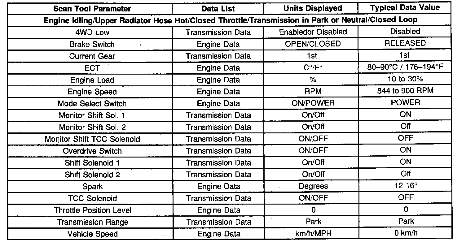 Scan tool values from a properly running Transmission may be used for comparison with the Transmission you are diagnosing. The Transmission Scan Tool Data List represents values that would be seen on a normal running engine.
