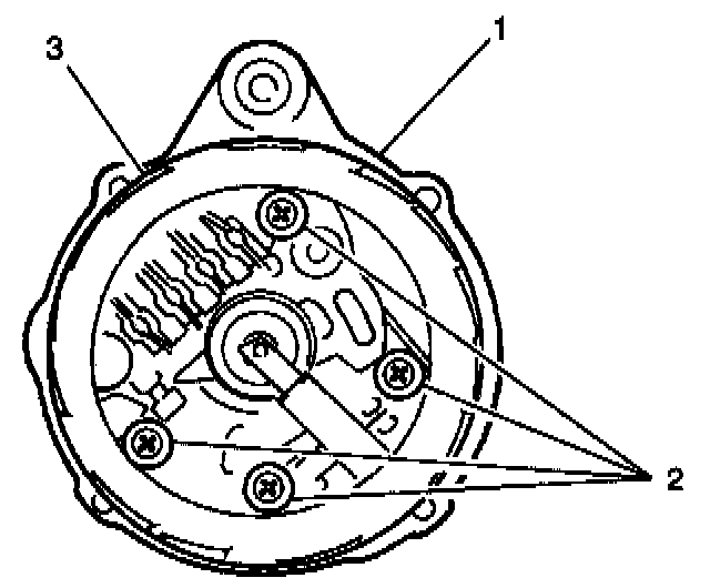 8. Install the stator to the rear housing. Secure the stator with the four retaining screws (2).