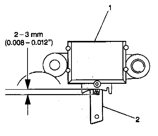 2. Install the brush springs and the brushes to the regulator so that the label on each brush is 2-3 mm (0.008-0.012 in) from the rectifier.