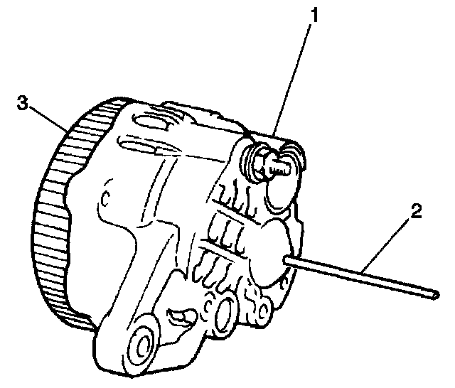 11. Support the brushes with a wire inserted through the hole in the rear housing (2).
