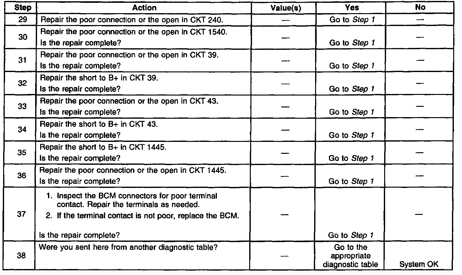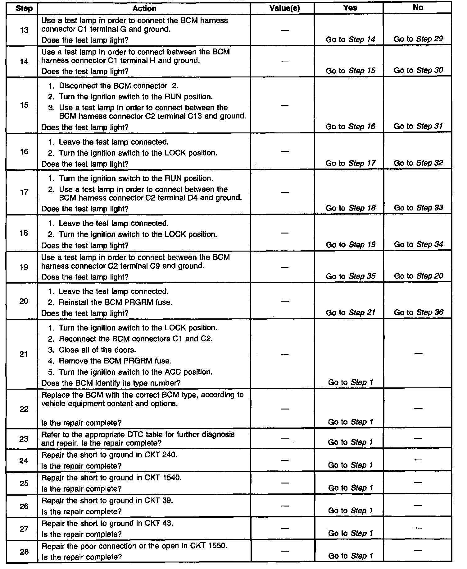 7. This step inspects for a short to ground in CKT 1540.