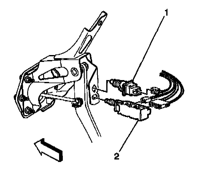 3. Pull out the switch (1) in order to remove the switch (1) from the retainer in the brake pedal bracket.