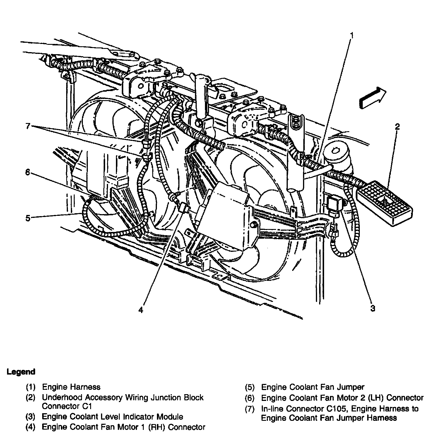 Mounted to the rear right side of the radiator, below the radiator cap