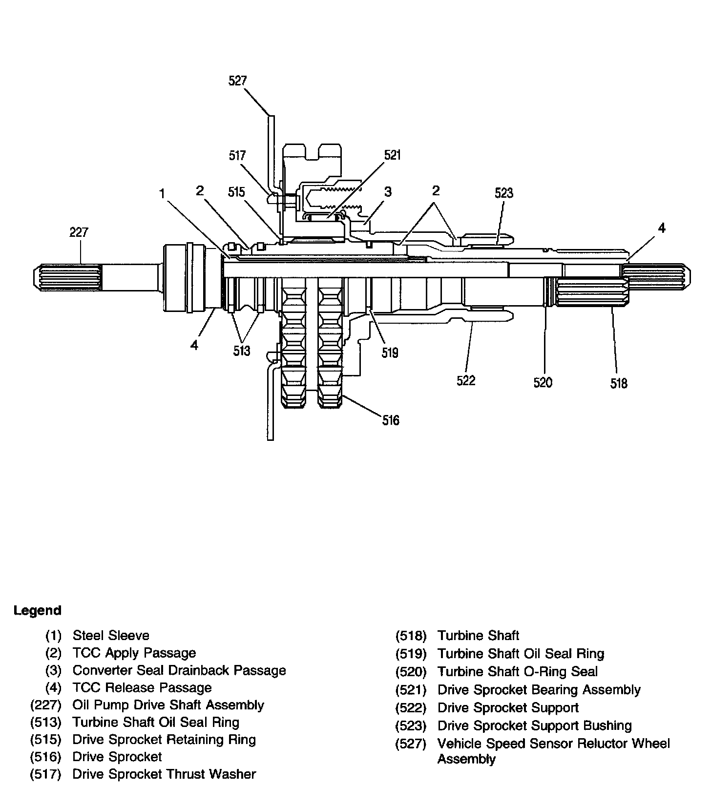 Oil Pump Drive Shaft and Drive Sprocket Support Fluid Passages