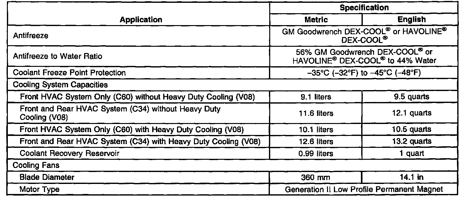 Engine Cooling System Specifications