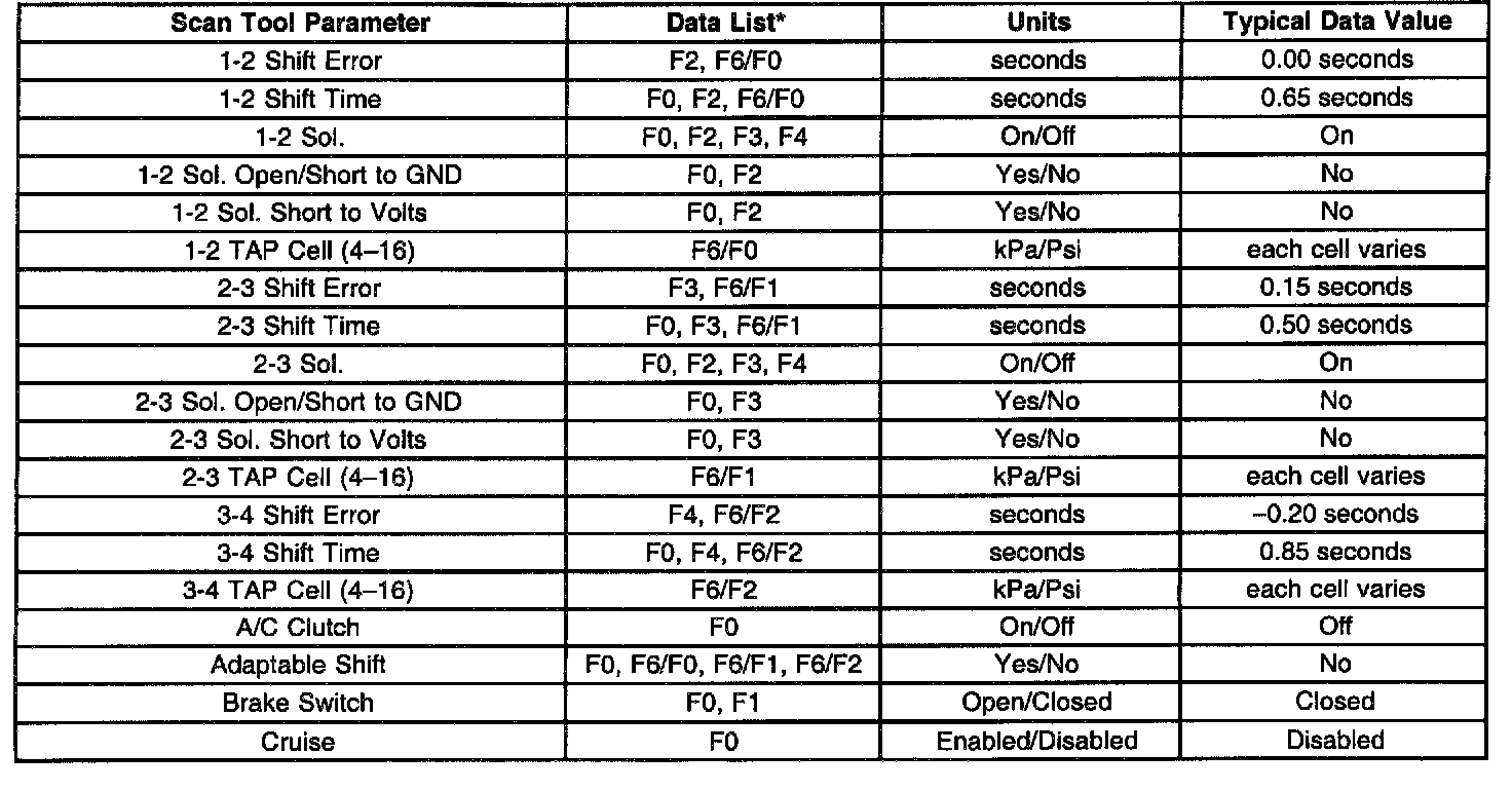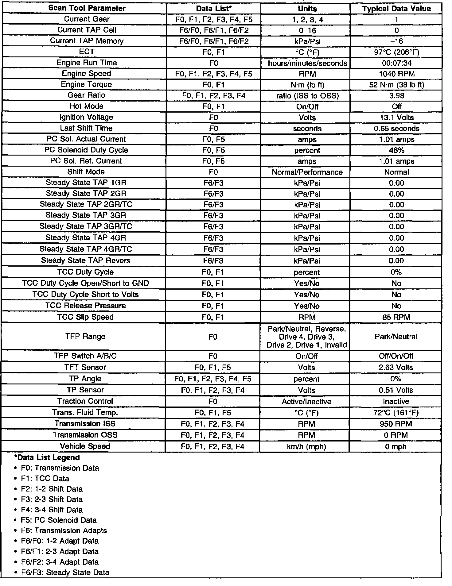Only the parameters listed below are used for diagnosing. If a scan tool displays other parameters, the values are not recommended by General Motors for use in diagnosis.