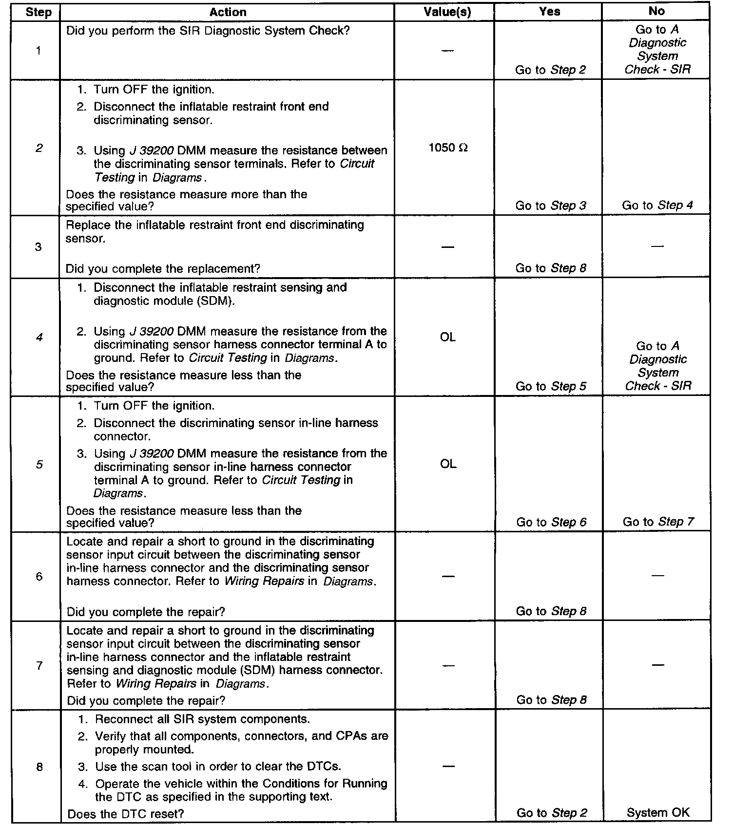 A broken or chafed wire in the inflatable restraint front end discriminating sensor circuit may cause an intermittent condition to occur. Refer to Testing for Intermittent and Poor Connections in Diagrams.