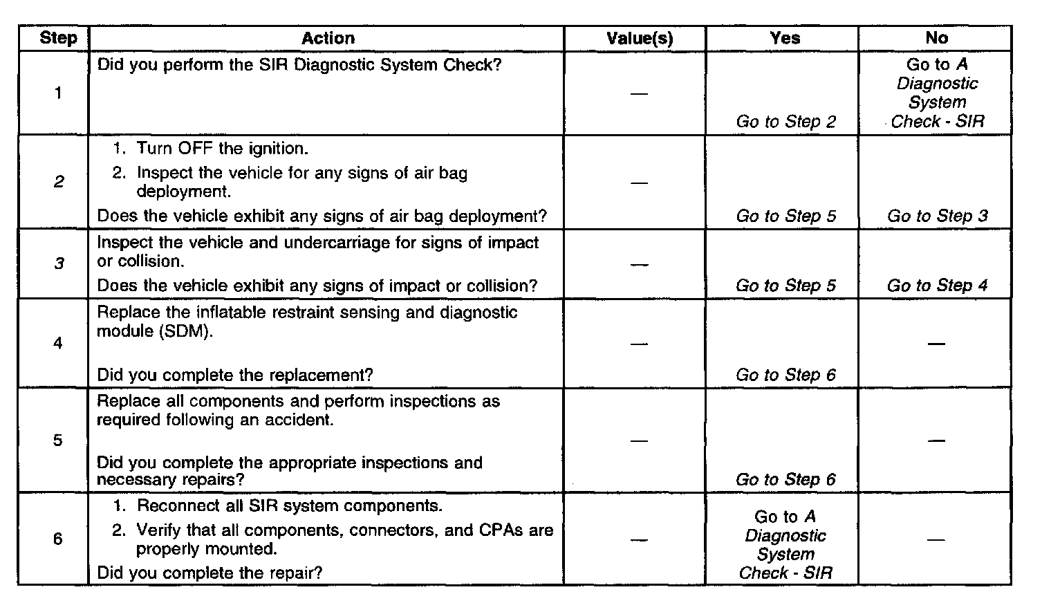 The following numbers refer to the step numbers in the diagnostic table: