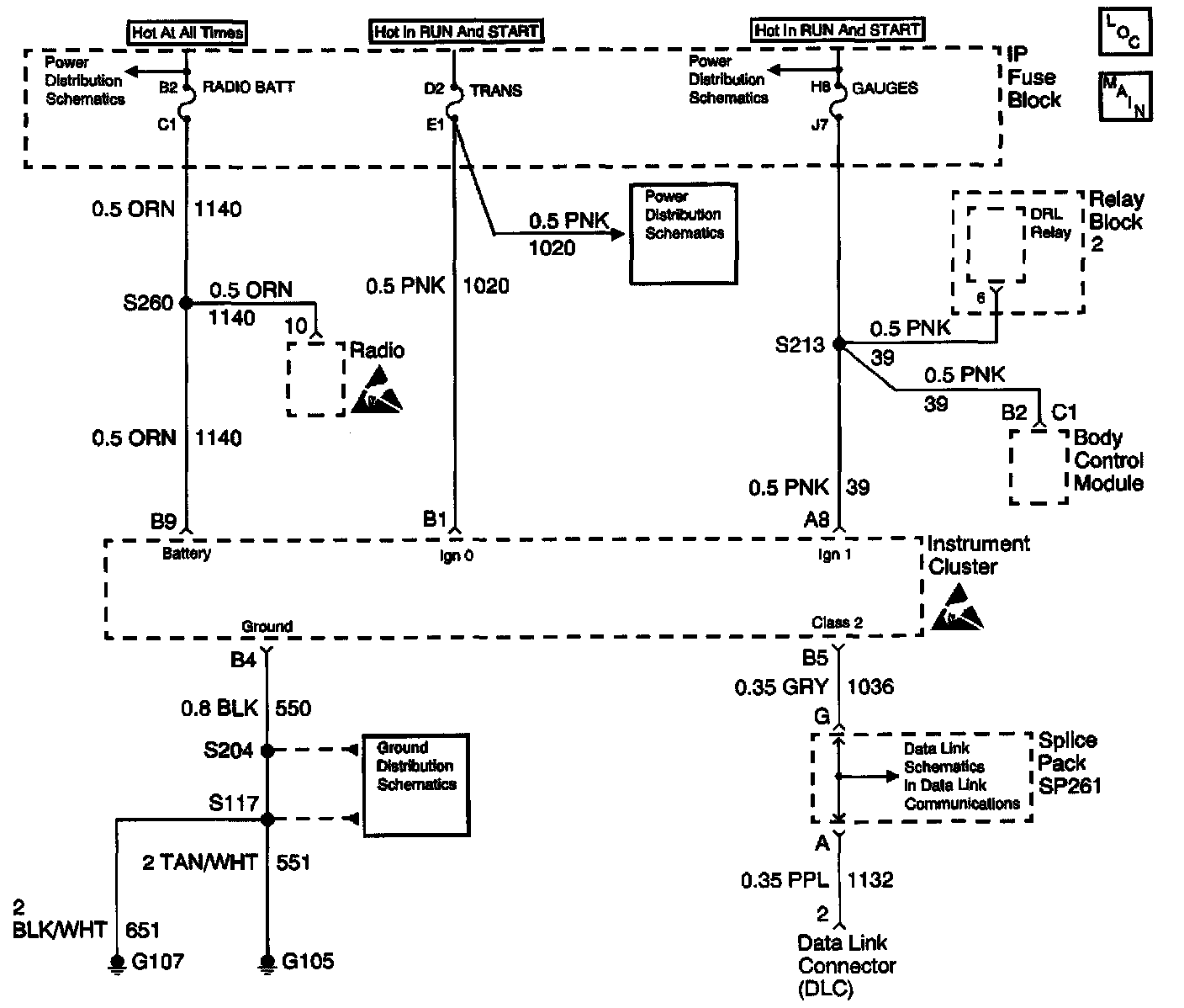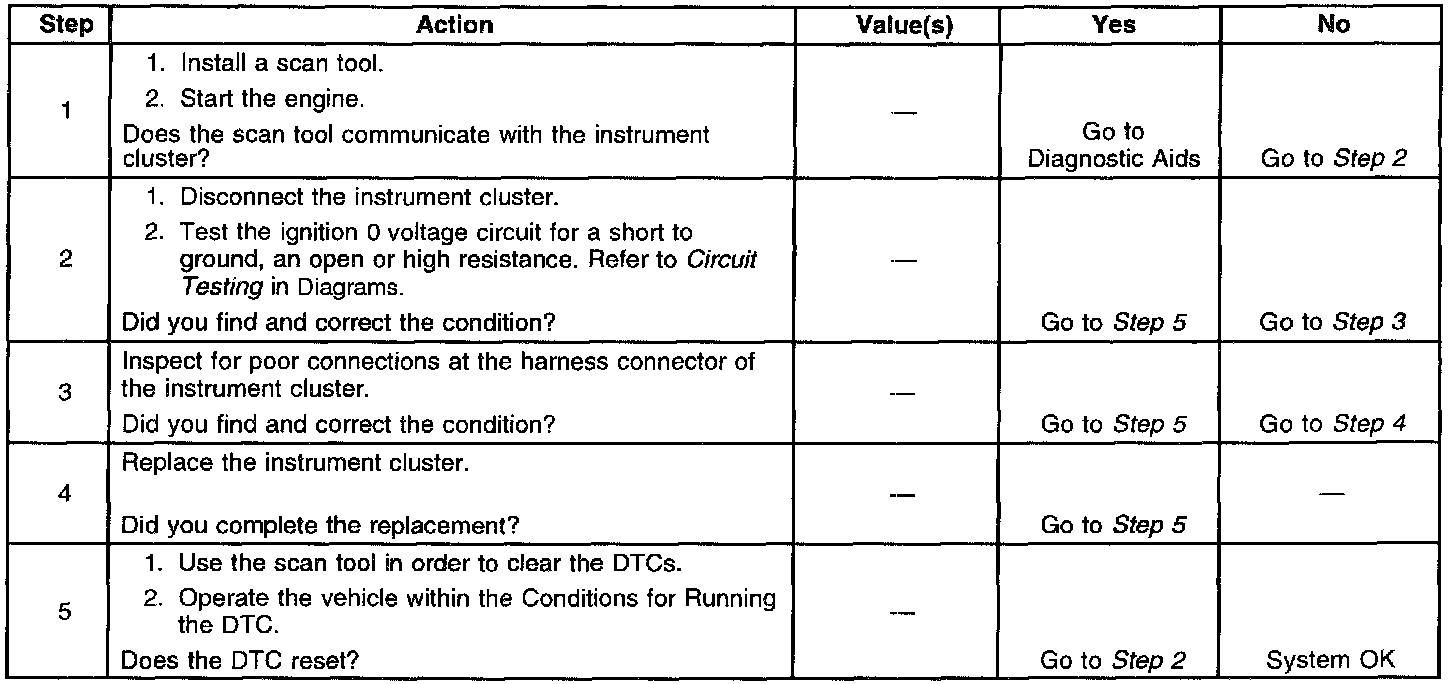 ^ If the ignition 0 voltage is low at the instrument cluster and the engine is not running, the odometer and PRNDL displays will not be illuminated and the instrument cluster will not communicate with the scan tool. The season odometer will display if the tripometer switch is pressed. The instrument cluster will communicate with the scan tool until the tripometer switch is released.