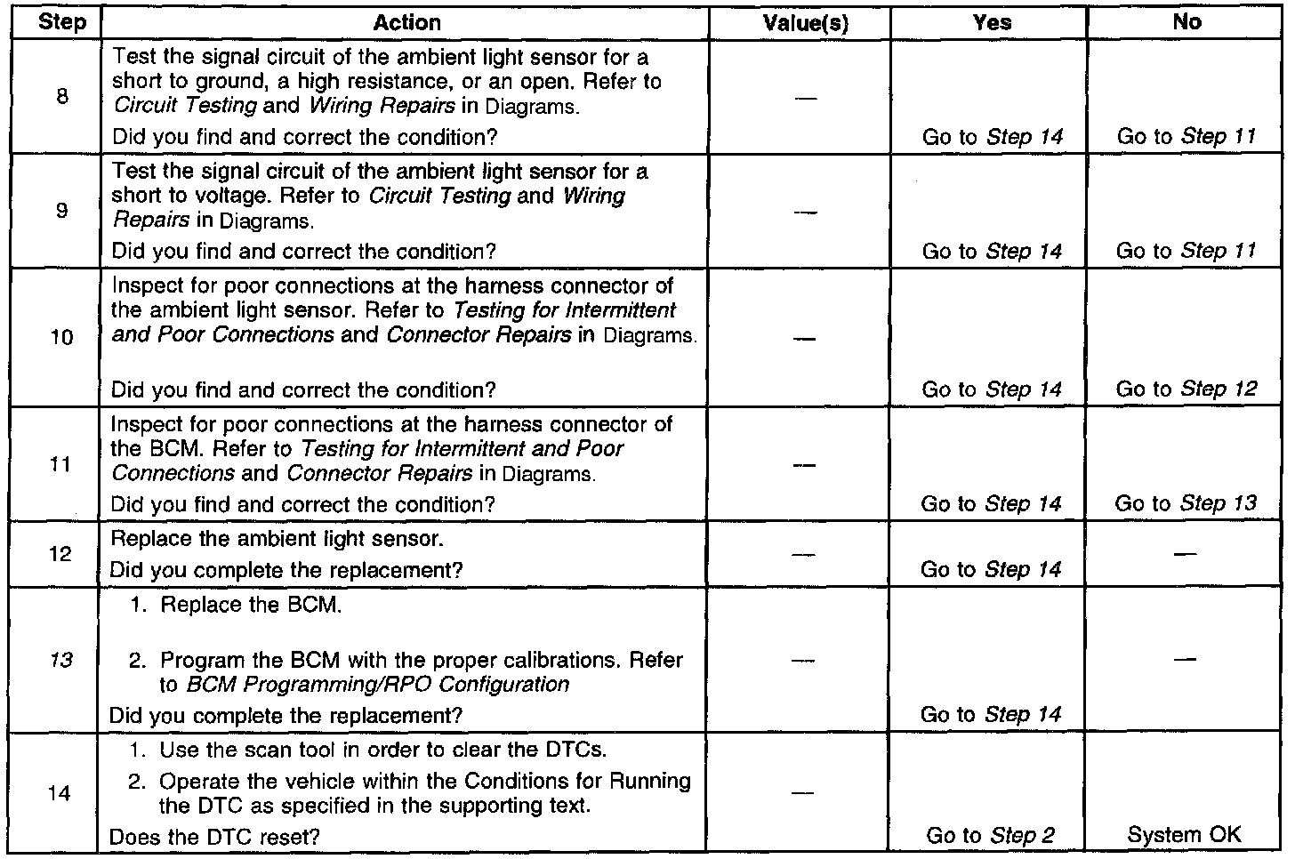 The number(s) below refer to the step number(s) on the diagnostic table.