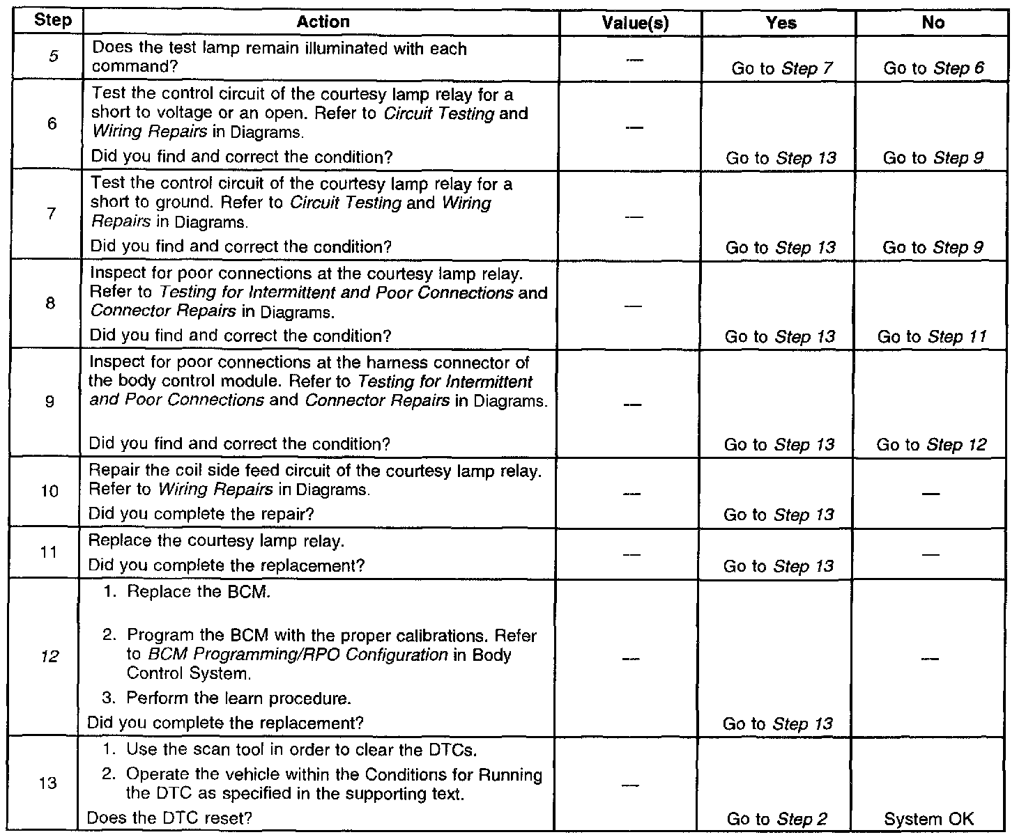 The number(s) below refer to the step number(s) on the diagnostic table.