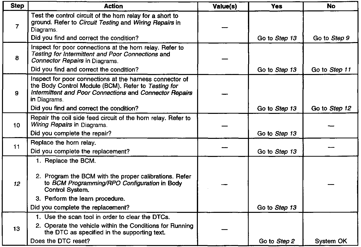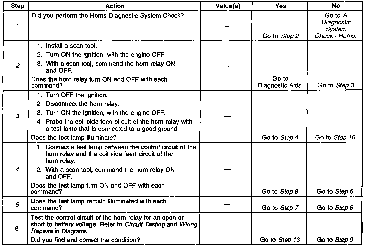 2. Listen for an audible click when the Horn Relay operates. Command both the ON and OFF states. Repeat the commands as necessary.