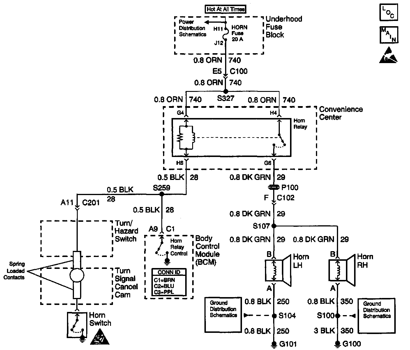 - If CKT 28 is open between splice 259 (S259) and the BCM the horn will only work with the horn button on the steering wheel.
