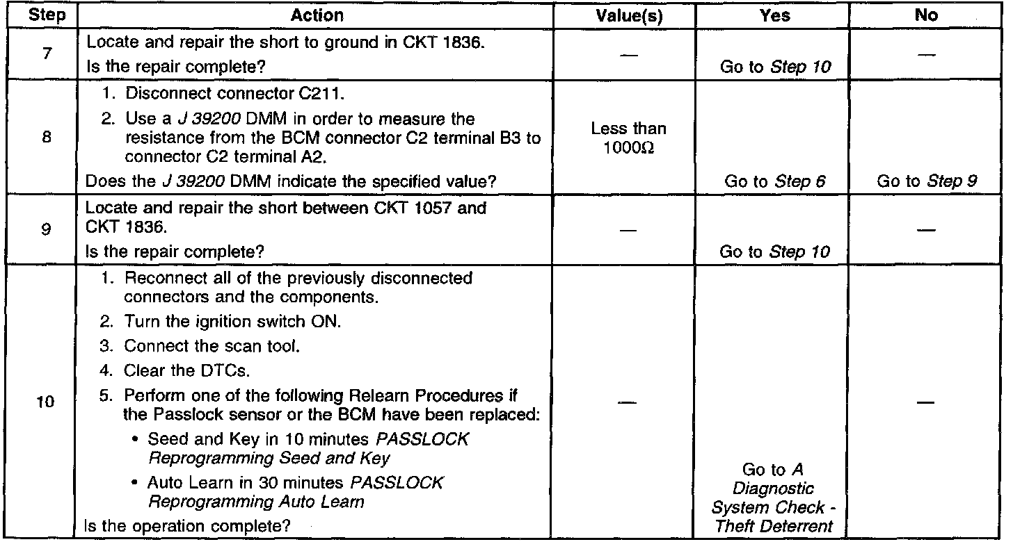 3. This step inspects for a short between the Passlock signal circuit and the Passlock sensor ground circuit.
