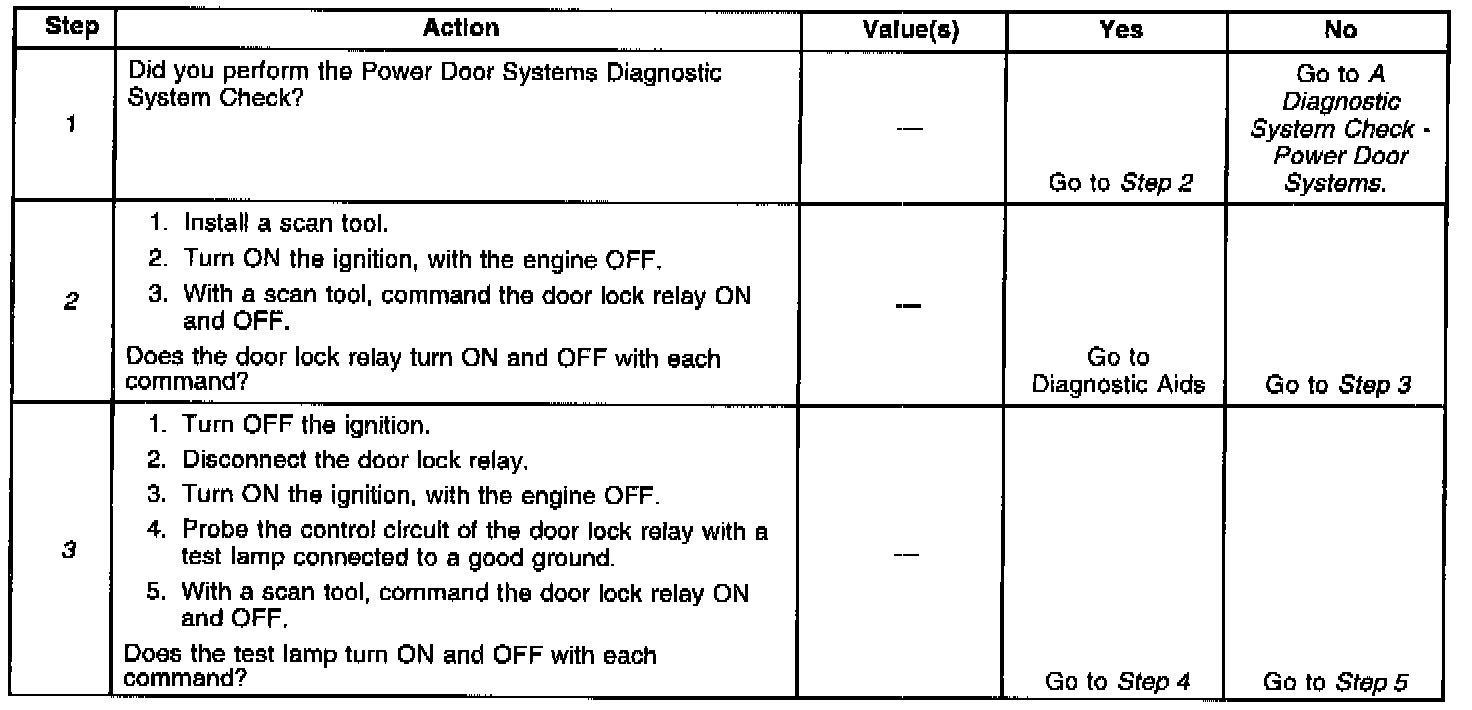 4. Tests for an open in the ground circuit to the door lock relay.