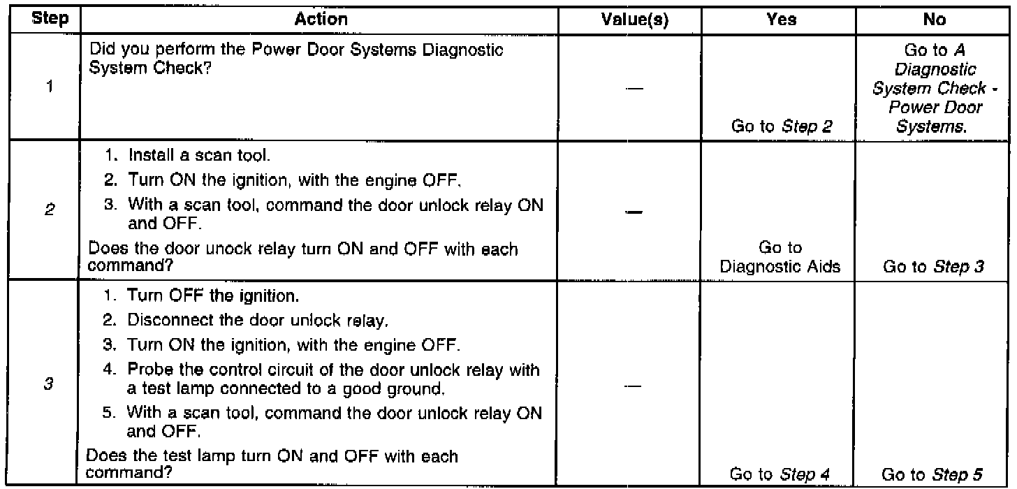 2. Listen for an audible click when the Door Unlock Relay operates. Command both the ON and OFF states. Repeat the commands as necessary.
