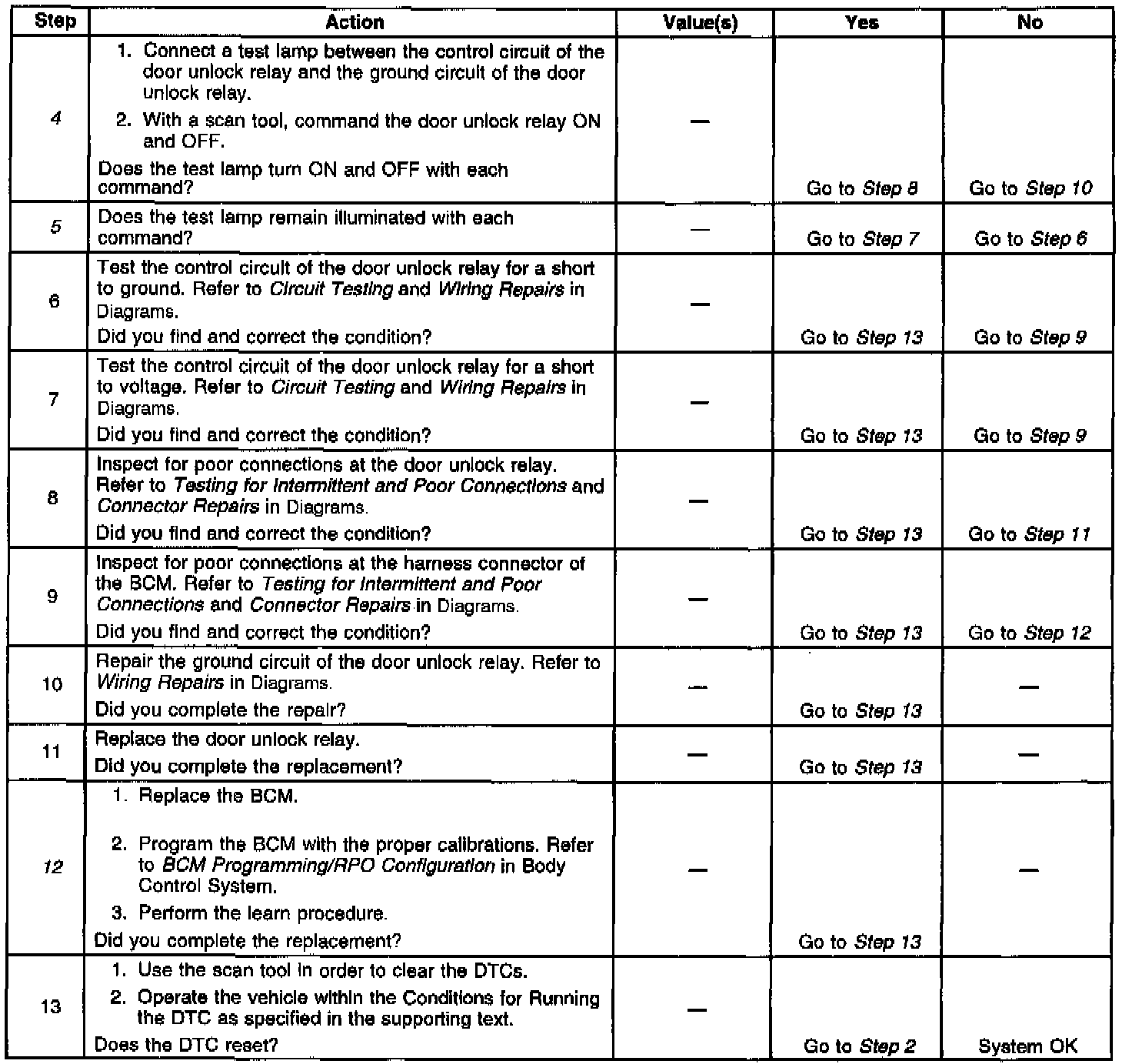 4. Tests for an open in the ground circuit to the door unlock relay.