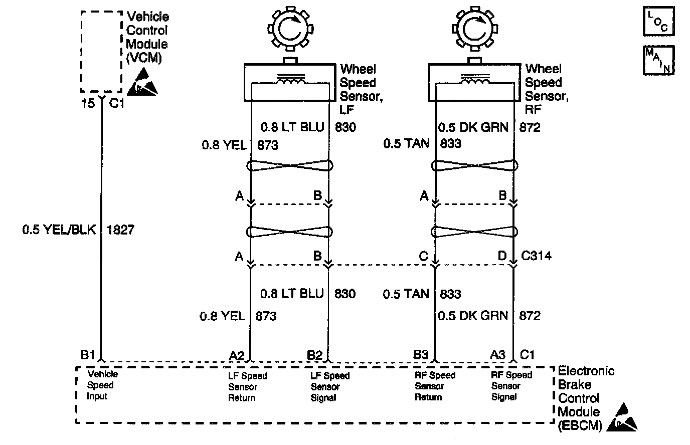 When inspecting a wheel speed sensor, inspect the sensor terminals and the harness connector for corrosion. If evidence of corrosion exists, then replace the wheel speed sensor. Refer to Wheel Speed Sensor Replacement (2WD) or Wheel Speed Sensor Replacement (AWD).