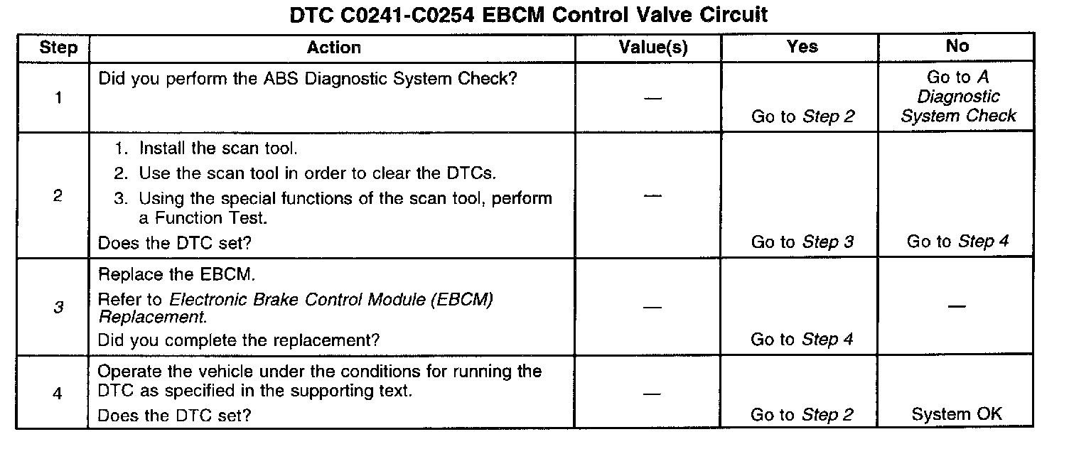 This DTC usually sets because of an open/shorted solenoid coil within the EHCU. The solenoid coil is located within the EBCM and is not serviceable. If the test does not repair the DTC, then replace the EBCM.