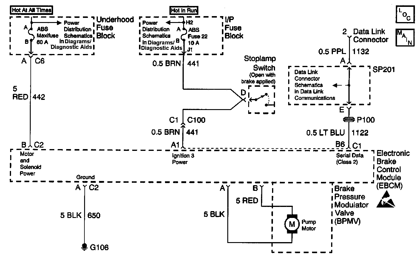 The EBCM initializes a self-test when the ignition is turned to the RUN position. This internal self-test verifies that all ABS circuitry is operating correctly.