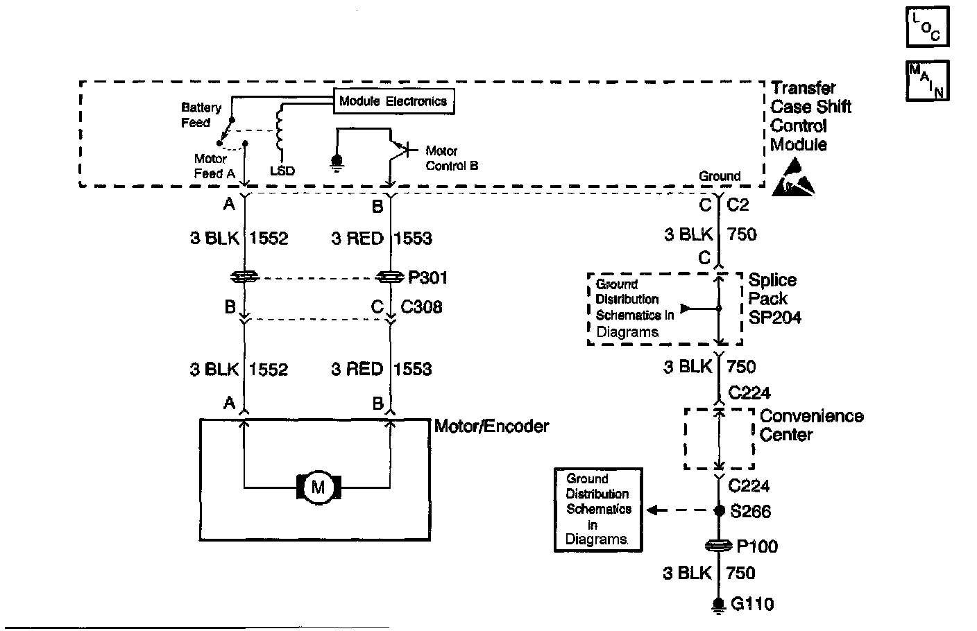 The transfer case encoder motor is a permanent magnet DC motor and gear reduction assembly. The encoder motor is controlled with a pulse width modulated (PWM) circuit within the transfer case shift control module. This circuit consists of a power supply relay (Motor Feed A) circuit that supplies voltage to the motor. The Motor Control B circuit is a PWM driver that varies the duty cycle to control the amount of current through the motor to ground.
