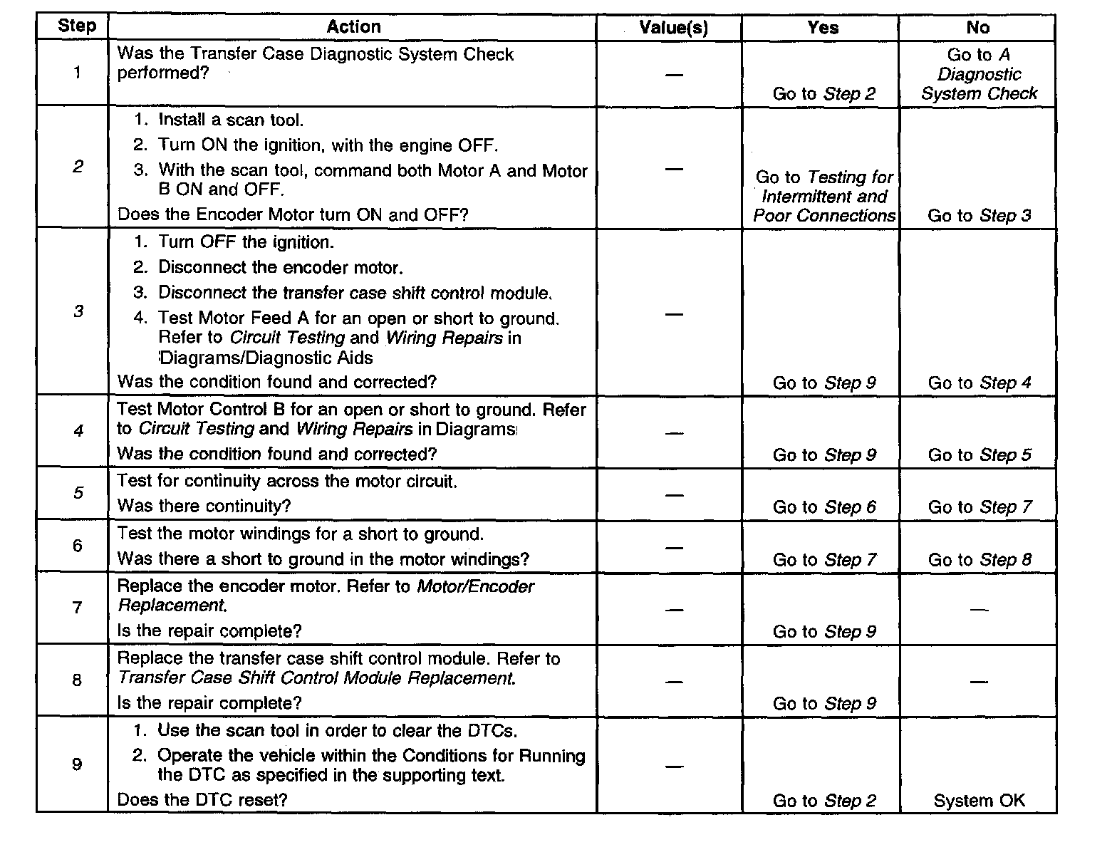 ^ The transfer case shift control module will clear the DTC if the condition for setting the DTC no longer exists.