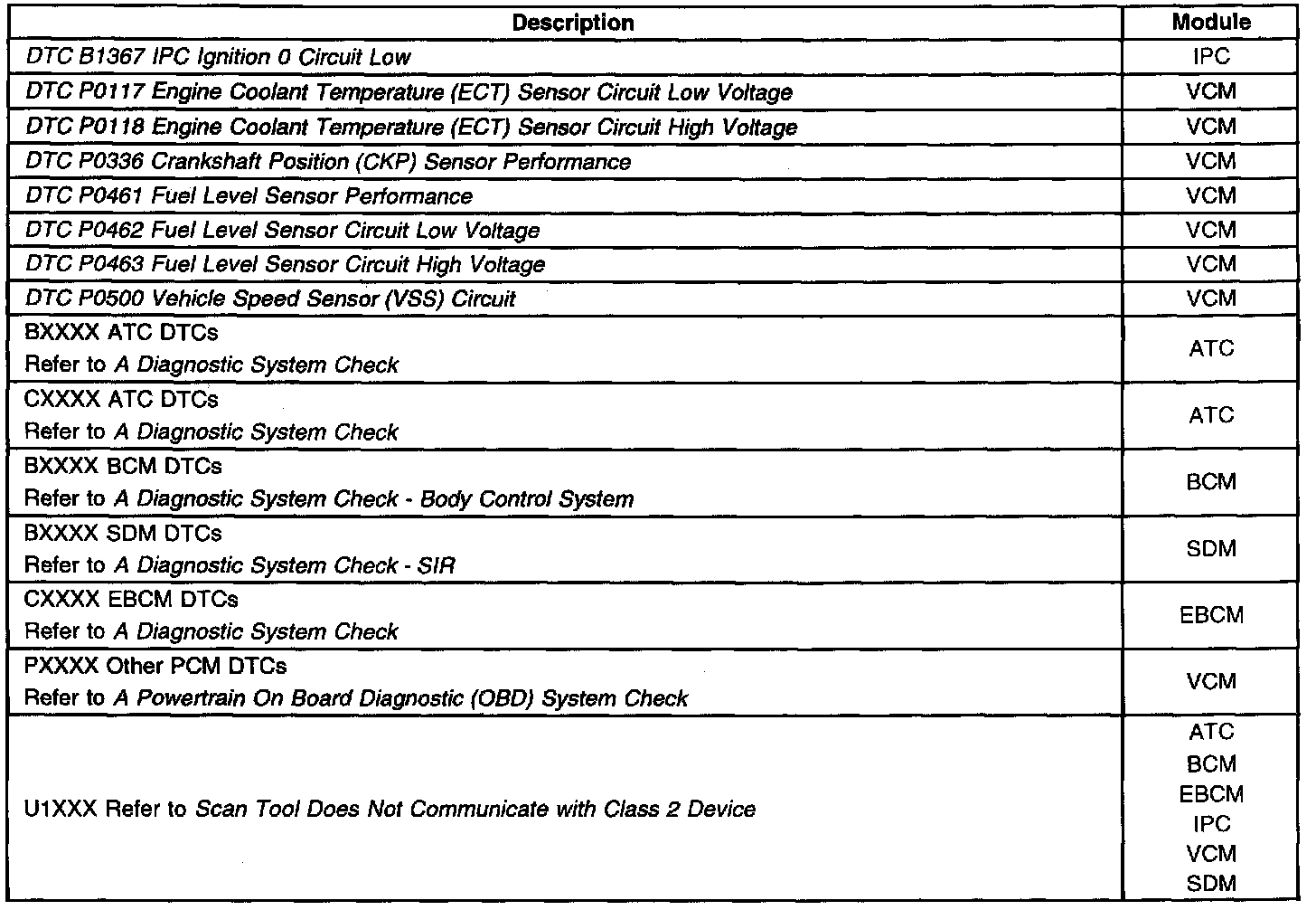 Diagnostic Trouble Code Descriptions