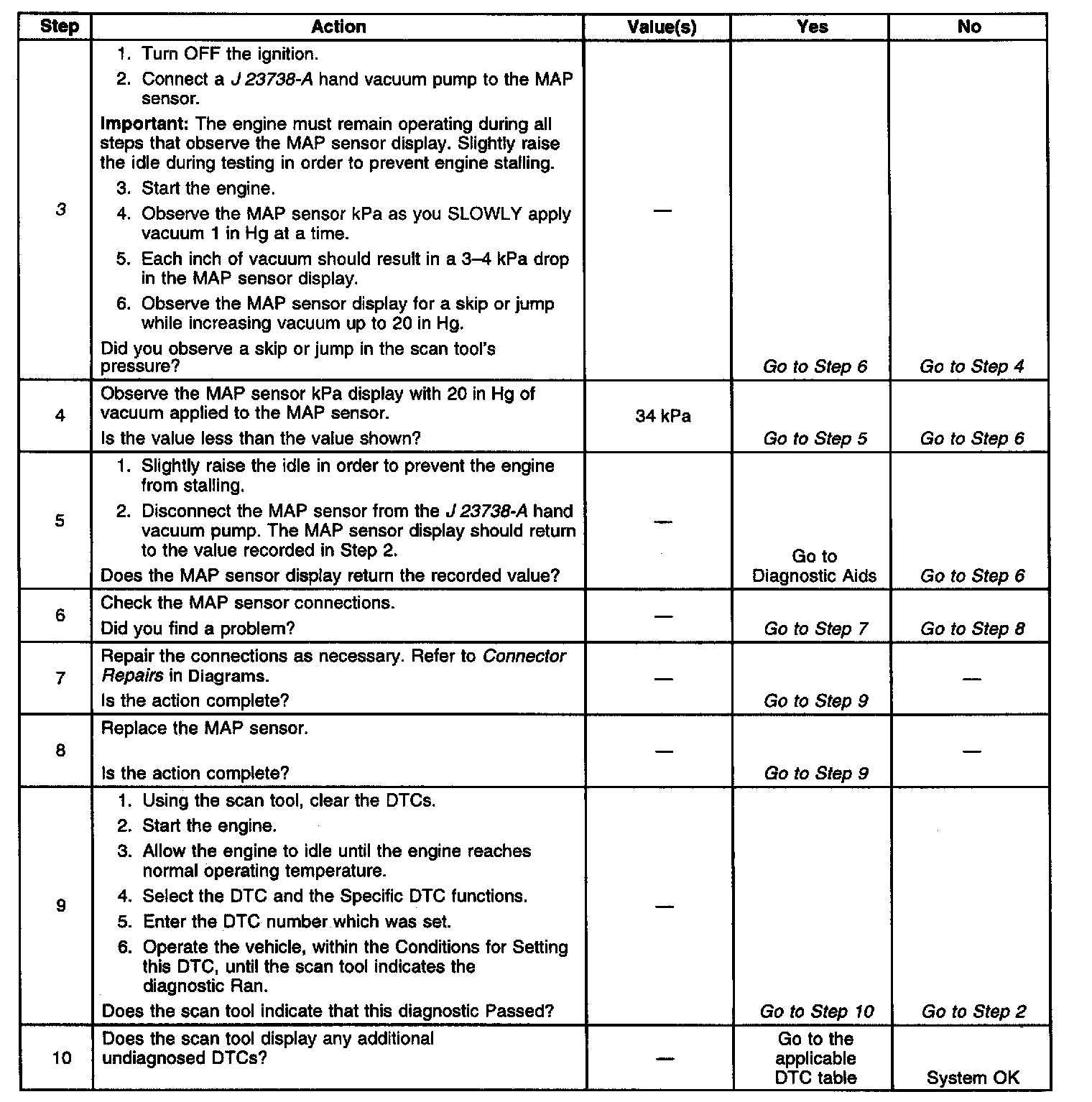 3. This step checks the MAP sensor's ability to correctly indicate engine vacuum.