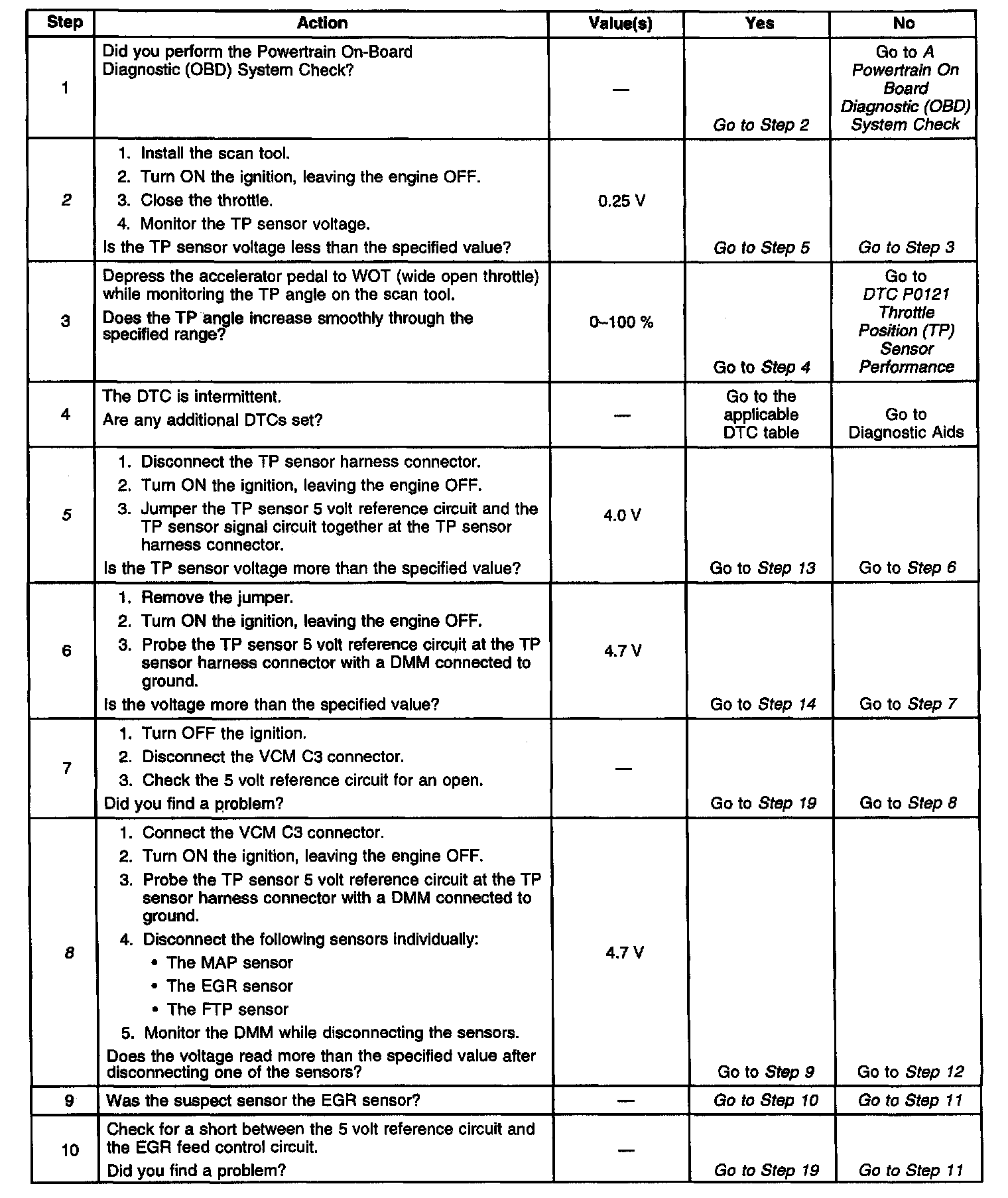 ^ An open or short to ground in the 5 volt reference circuit or the TP sensor signal circuit results in a DTC P0122.