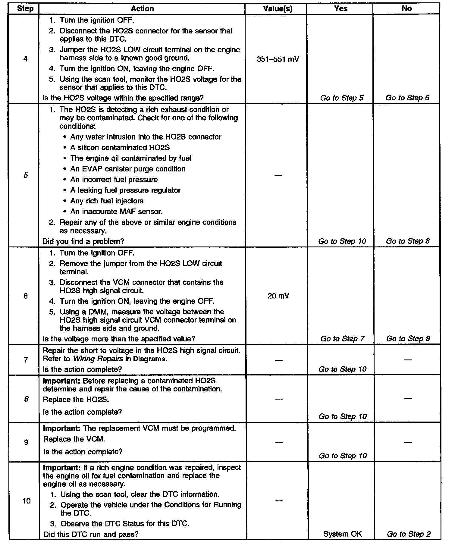 ^ Inspect for a false rich indication due to silicon contamination of the Heated Oxygen Sensor. This DTC, accompanied by a lean driveability condition and a powdery white deposit on the sensor, may indicate a false rich condition. Inspect for intermittents.