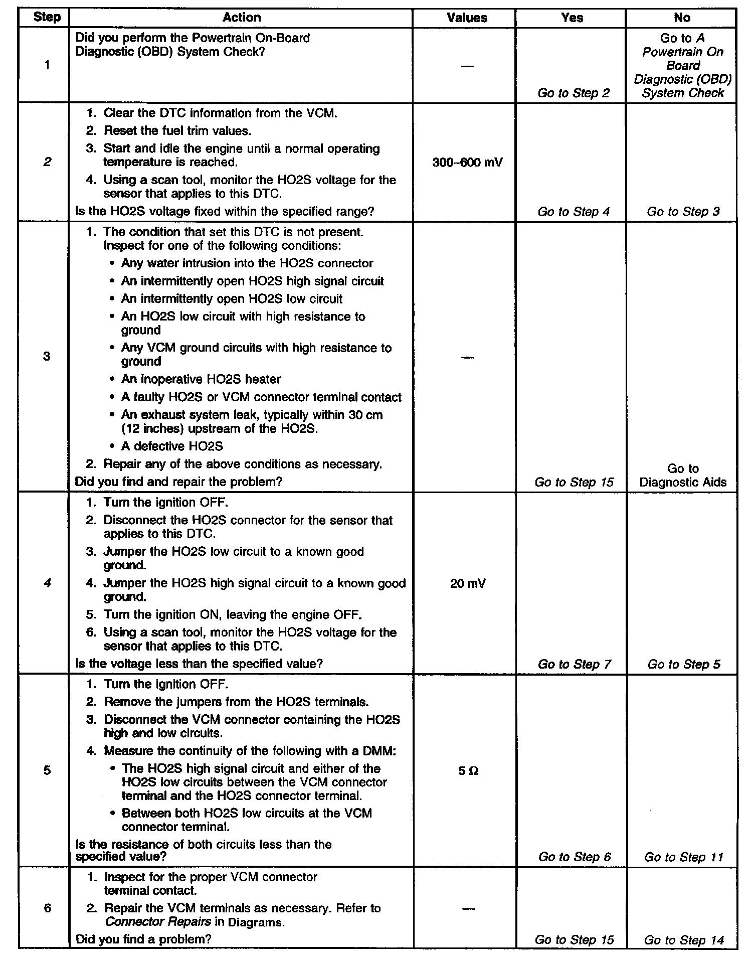 ^ An open or a short to voltage on either the HO2S signal or HO2S low circuits