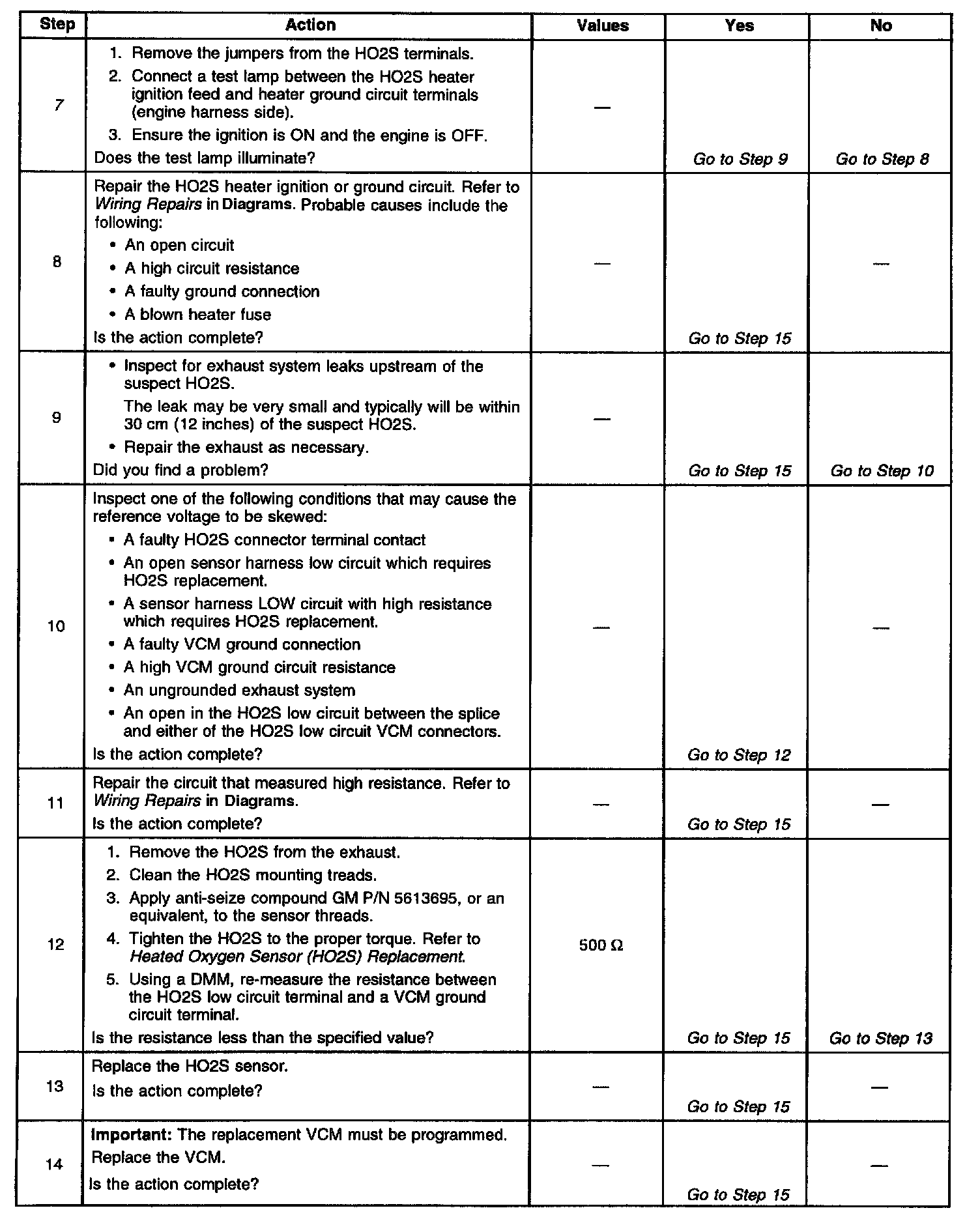 ^ An open or a short to voltage on either the HO2S signal or HO2S low circuits.