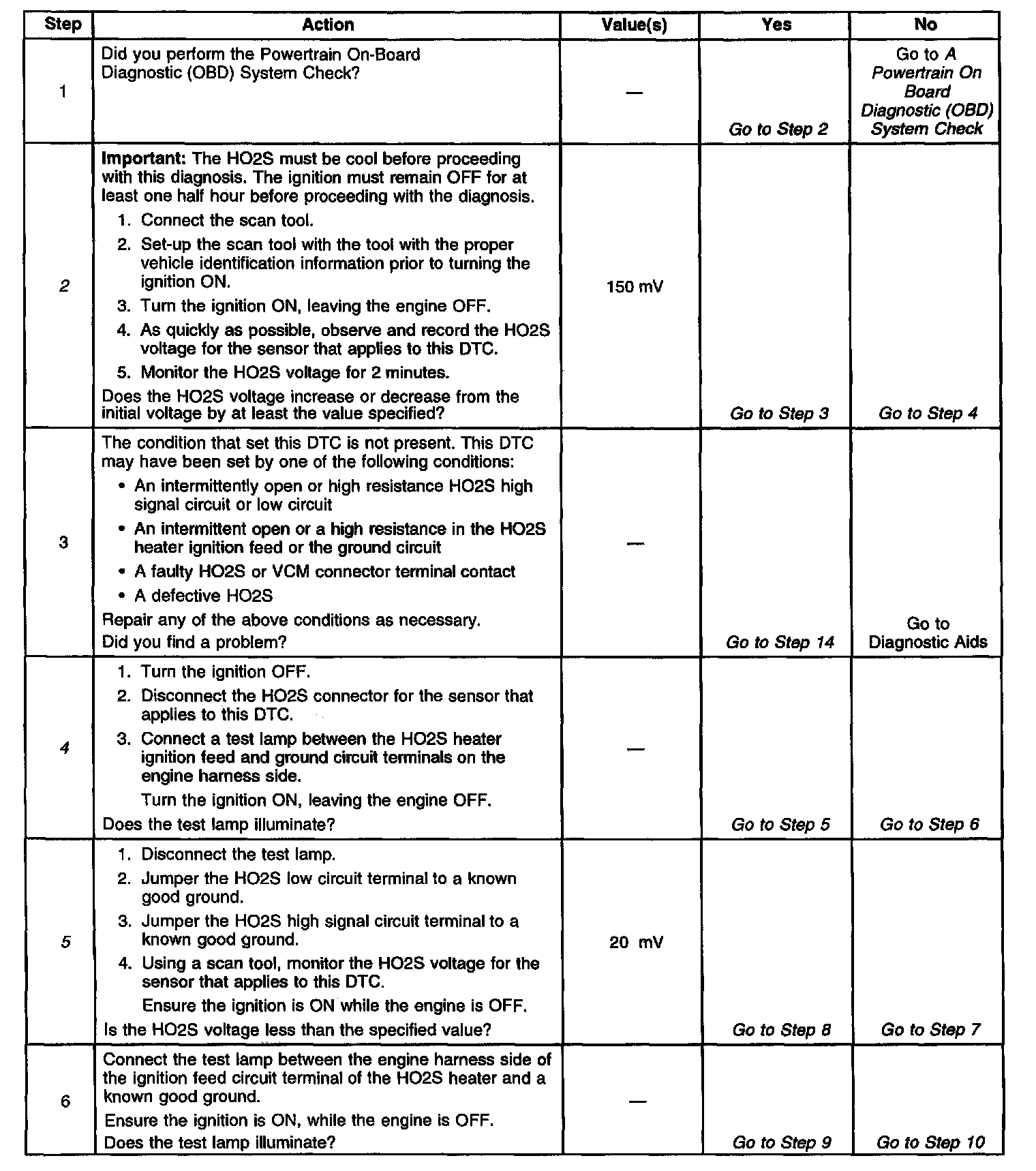 ^ An open or a short to voltage on either the HO2S signal or HO2S low circuits