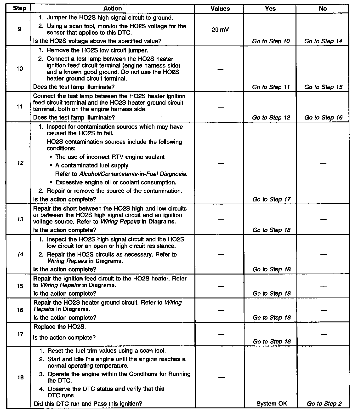 The number below refers to the Step number on the diagnostic table.