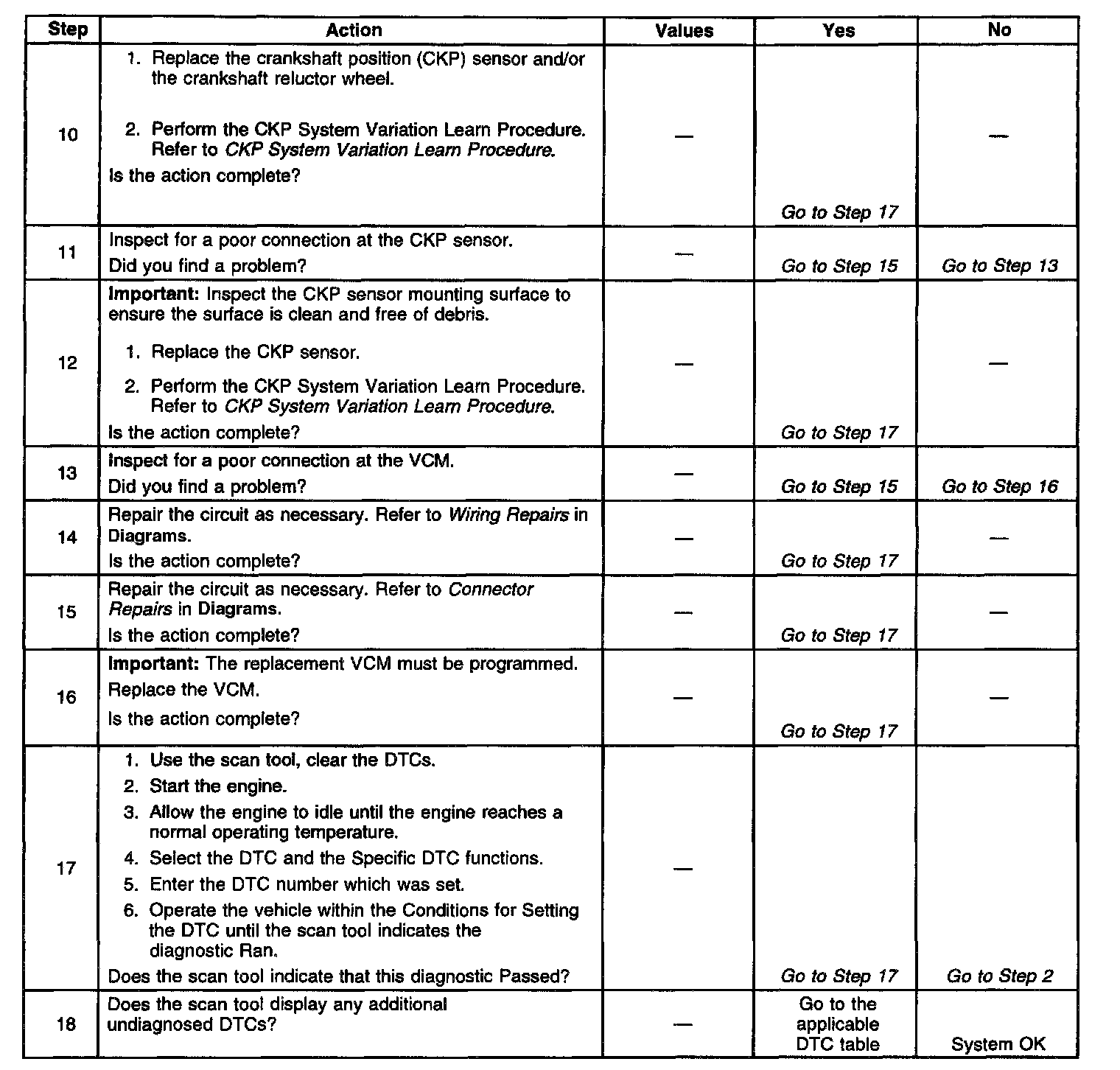 If the VCM does not detect a CKP signal during engine cranking for a predetermined amount of time, this DTC will be set.