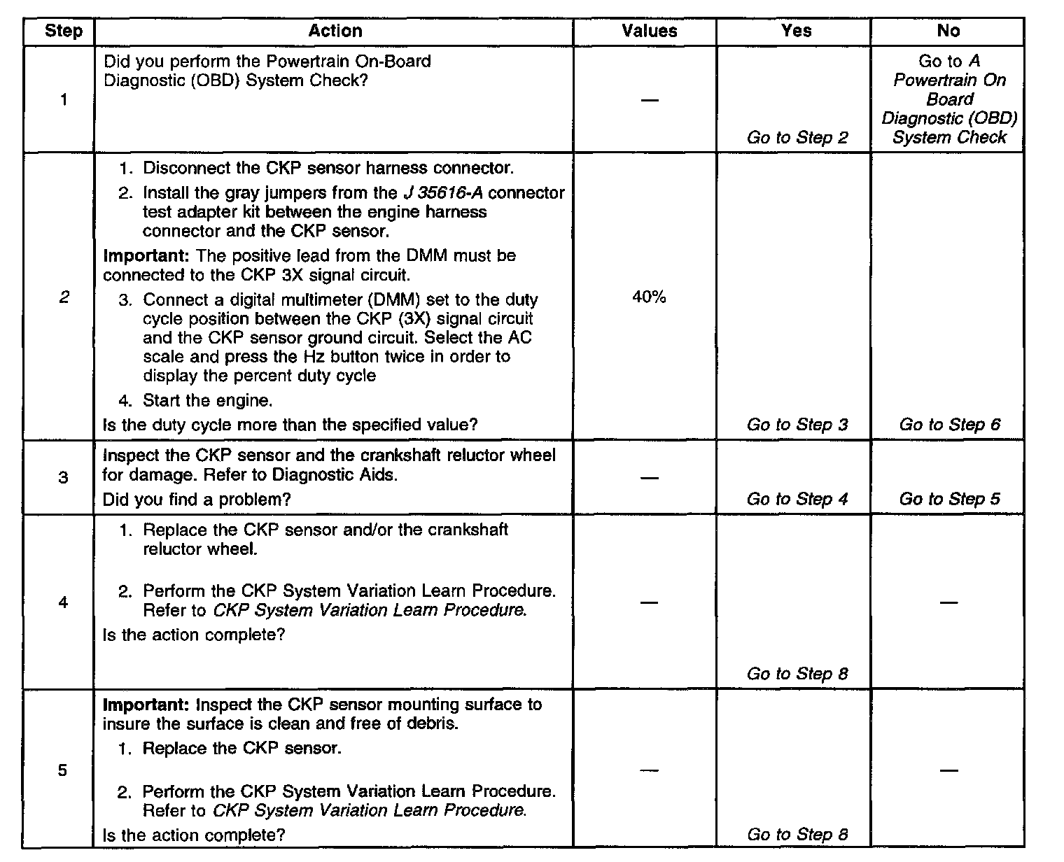 2. All 3 circuits must be jumped so that the engine will run. This test checks the duty cycle output of the CKP sensor. An engine will start with a low duty cycle failure but will not run very well.