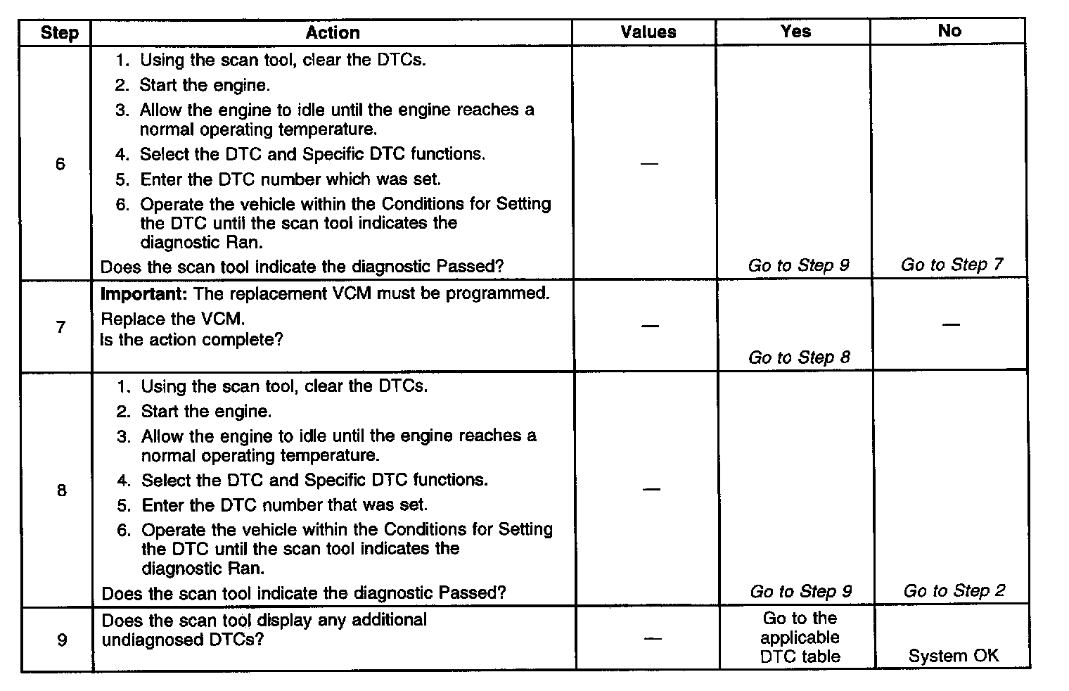 The numbers below refer to the Step numbers on the diagnostic table.