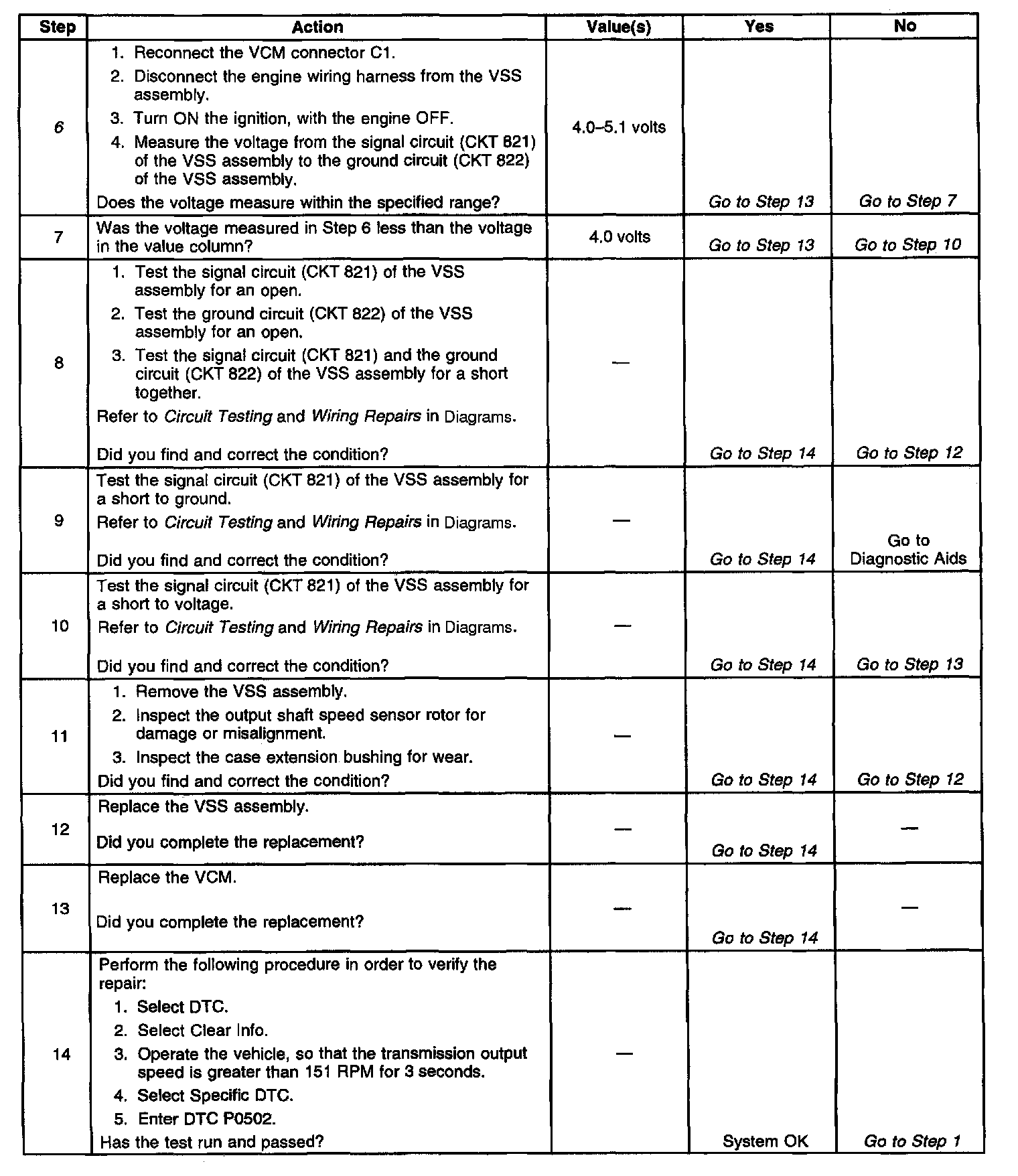 ^ The VCM stores DTC P0502 in VCM history during the second consecutive trip in which the Conditions for Setting the DTC are met.