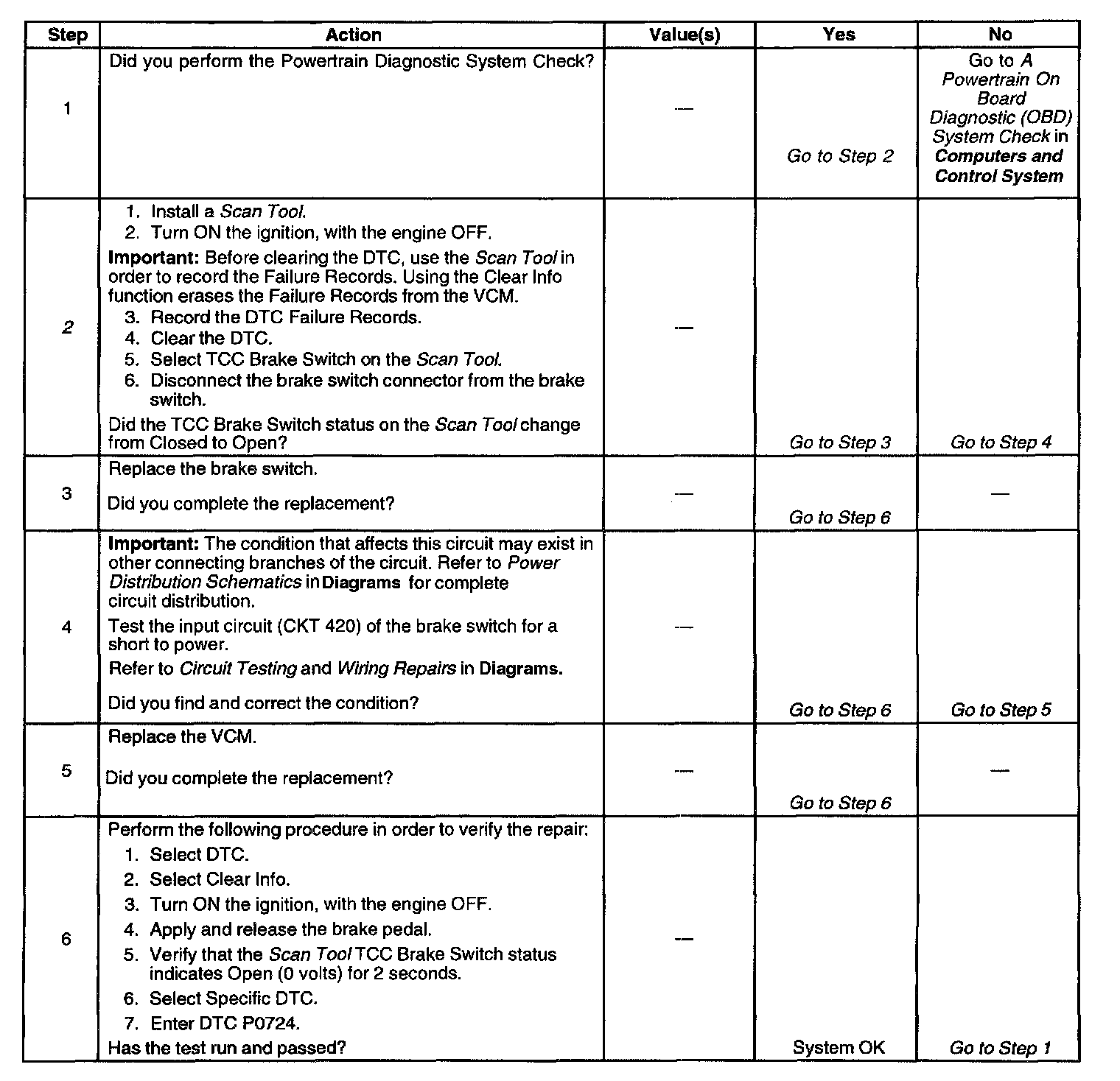 ^ The VCM stores DTC P0724 in VCM history.