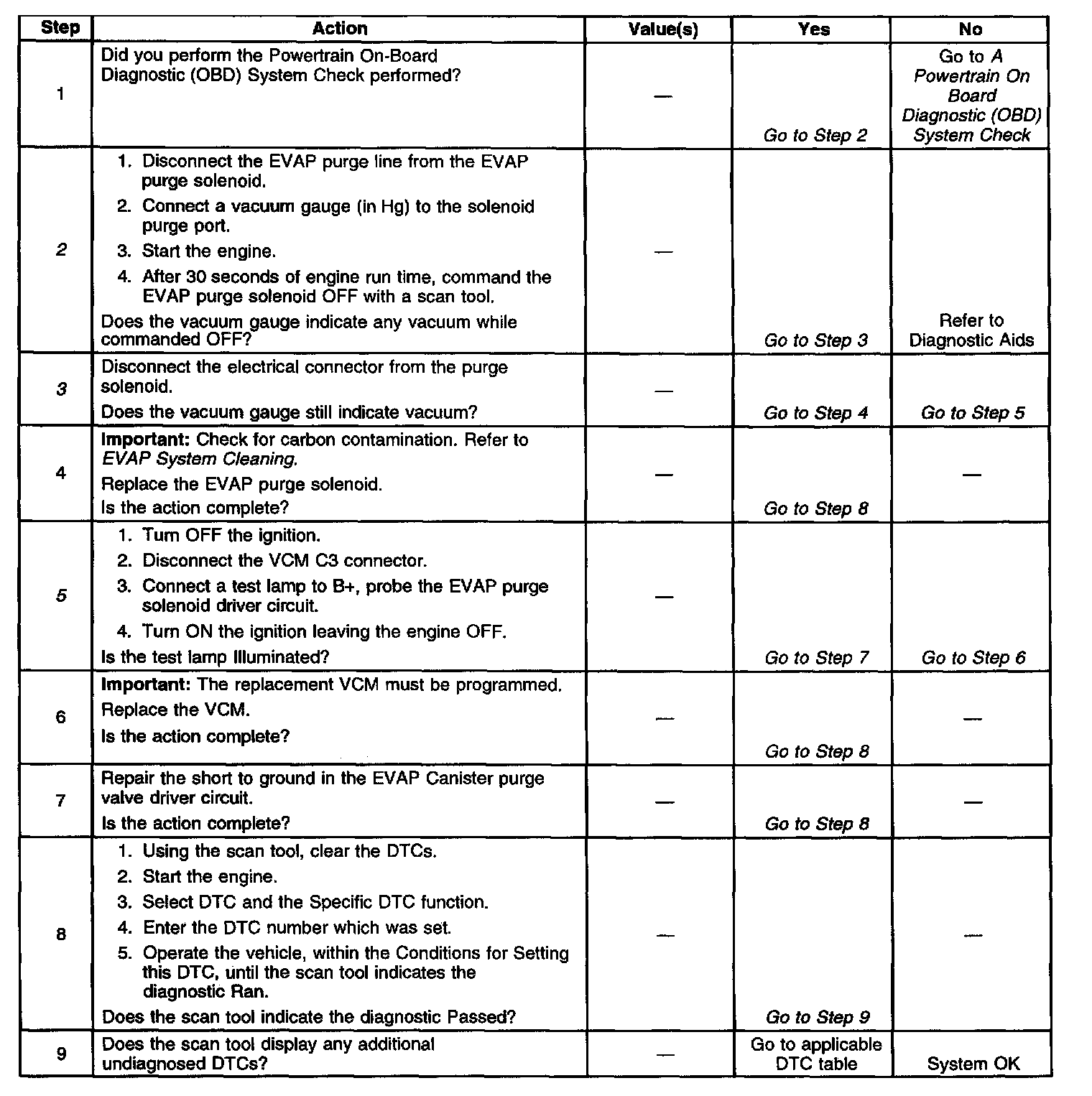 IMPORTANT: An accurate indication of fuel level is required for the VCM to properly Pass or Fail this DTC. Always diagnose fuel level sensor DTCs before performing this DTCs diagnostic table. Always check for fuel level sensor DTCs stored in history.