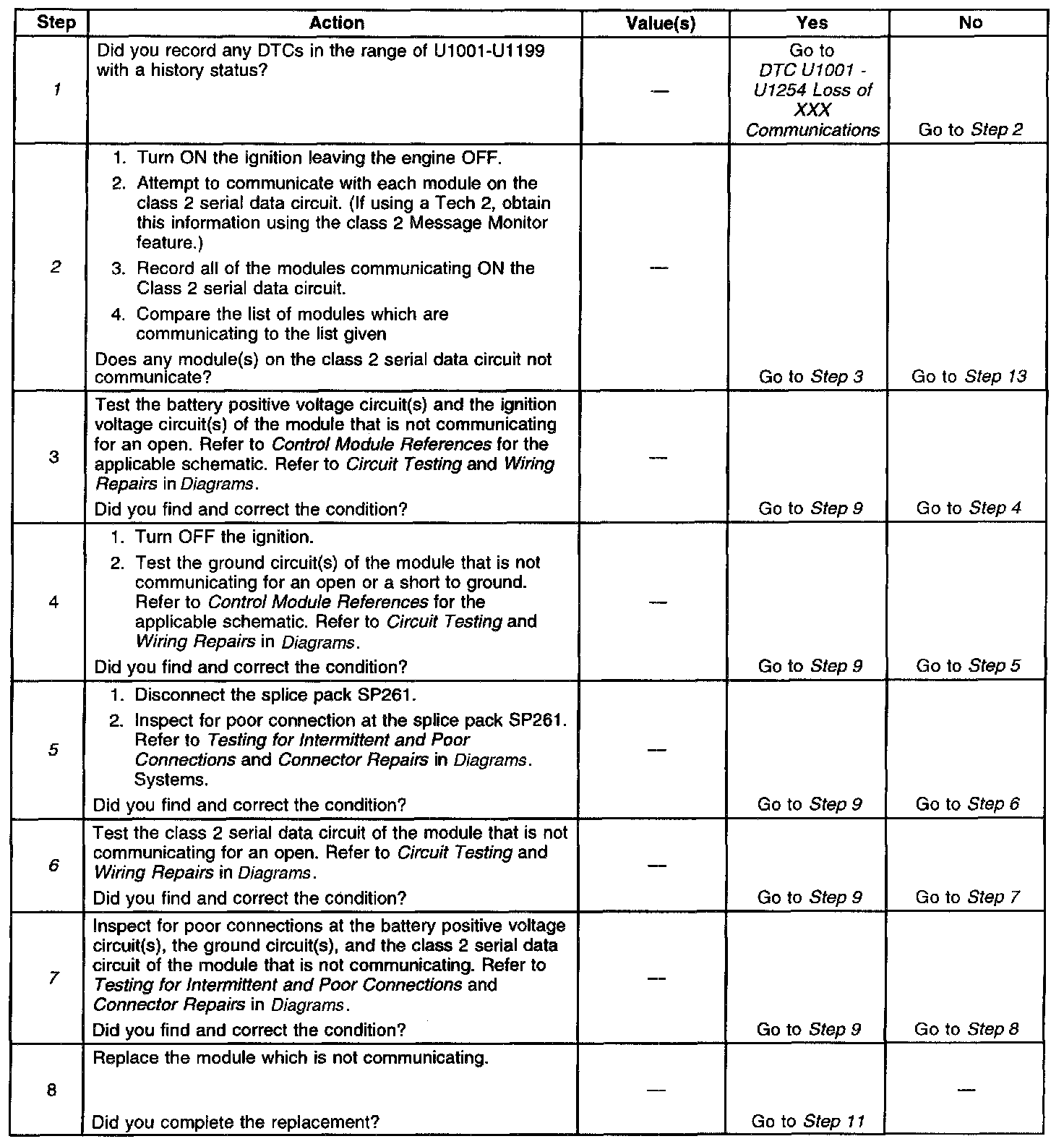 2. The module(s) which is not communicating is the likely cause of U1000 or U1255 being set. The following modules communicate on the class 2 serial data circuit: