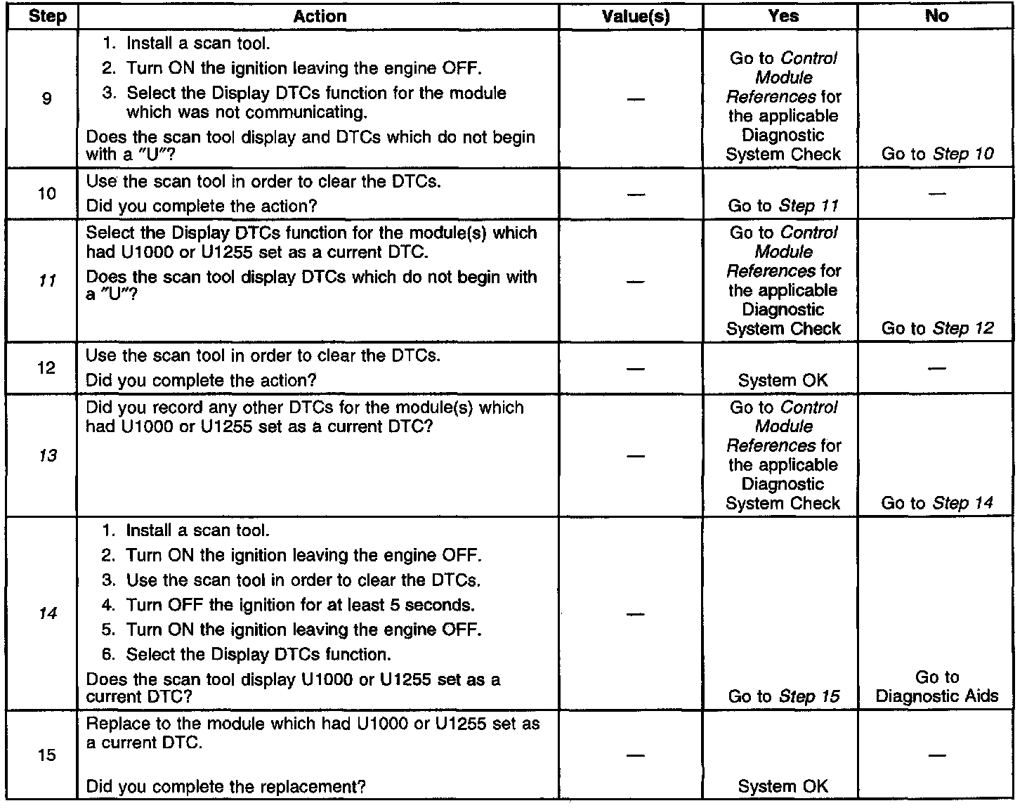 13. If all modules are communicating, the module which set U1000 or U1255 may have done so due to some other condition.