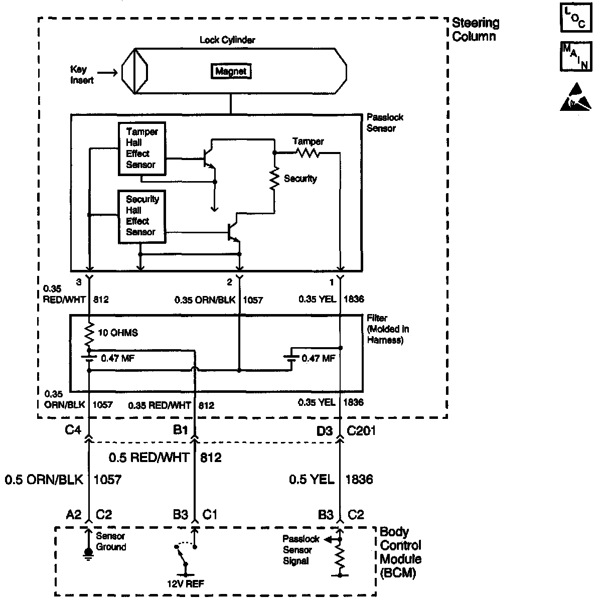 The body control module (BCM) supplies the following items to the Passlock(TM) sensor: