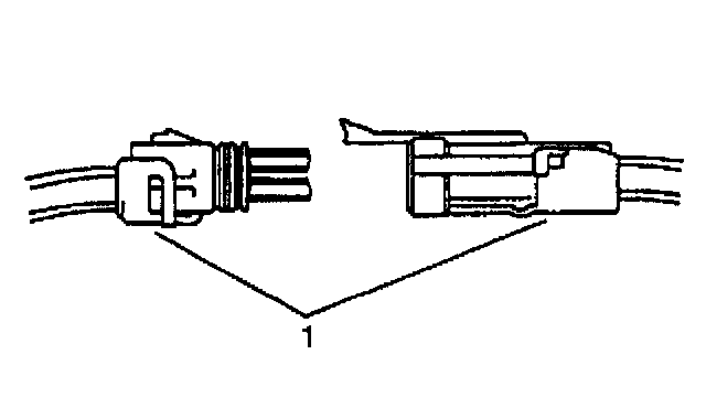 ^ Insert the Weather Pack� terminal removal tool into the front (mating end) of the connector cavity until it rests on the cavity shoulder (1).