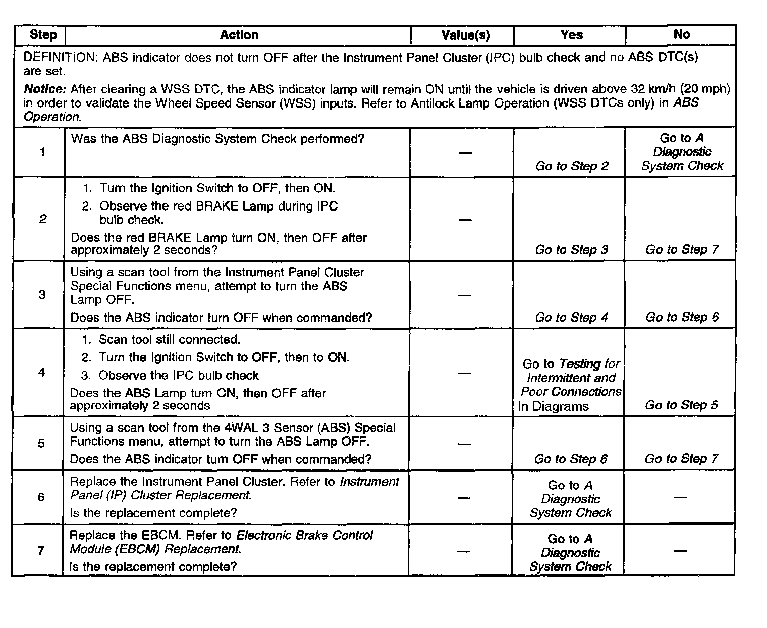 2. The EBCM turns Off the ABS and BRAKE indicator lamps after bulb test. This step shows the EBCMs ability turn off the BRAKE indicator lamp.